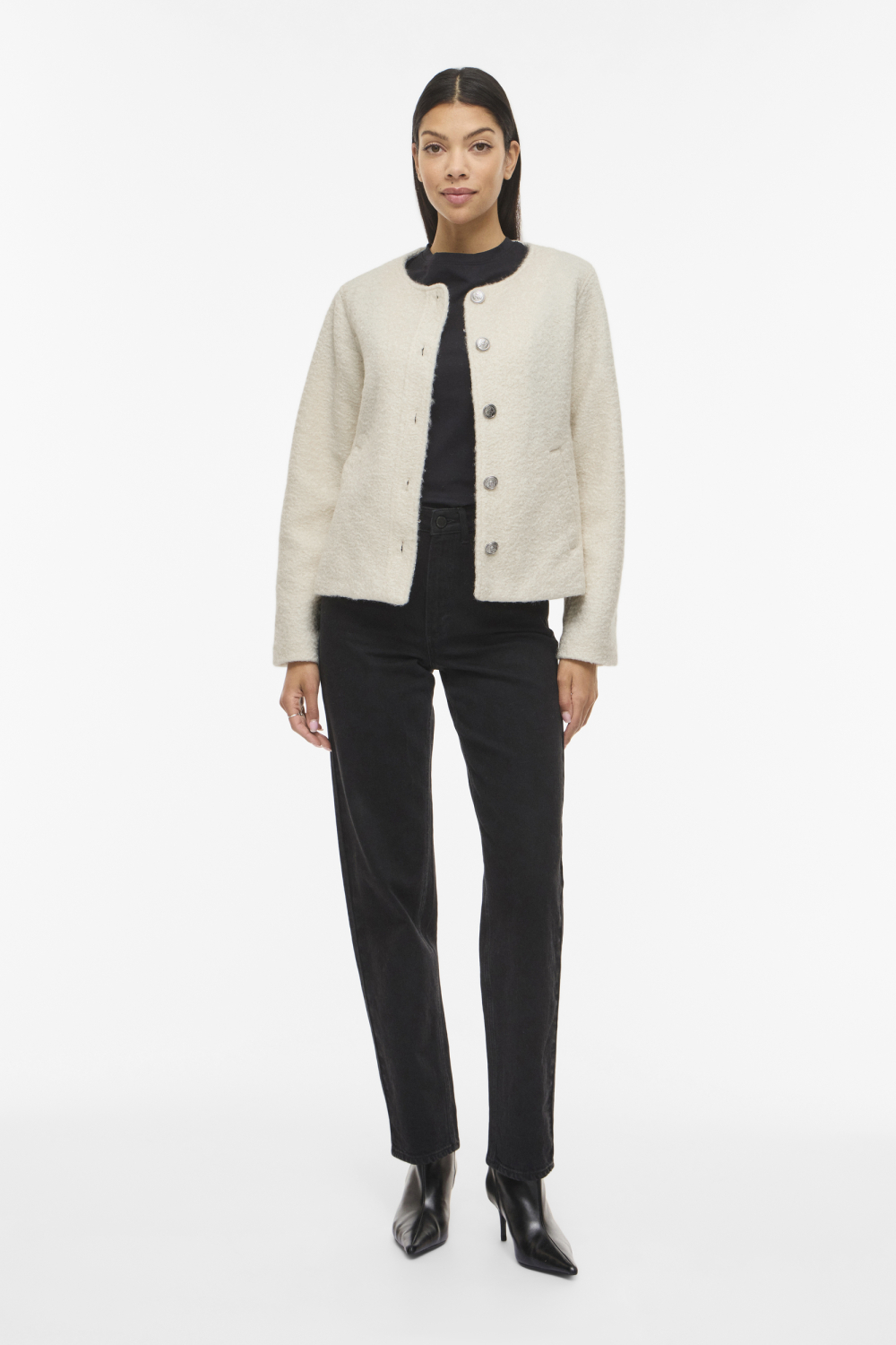 Deze casual jas van Vila biedt jou een stijlvolle en veelzijdige aanvulling op je lentegarderobe. Met een verfijnde structuur en een zachte birch tint, is deze jas ideaal voor dagelijkse outfits. De regular fit en de ronde hals creëren een comfortabele pasvorm die perfect aansluit bij verschillende stijlen. De lange mouwen maken deze jas geschikt voor koelere lentedagen, terwijl de knoopsluiting zorgt voor een nette en elegante uitstraling.