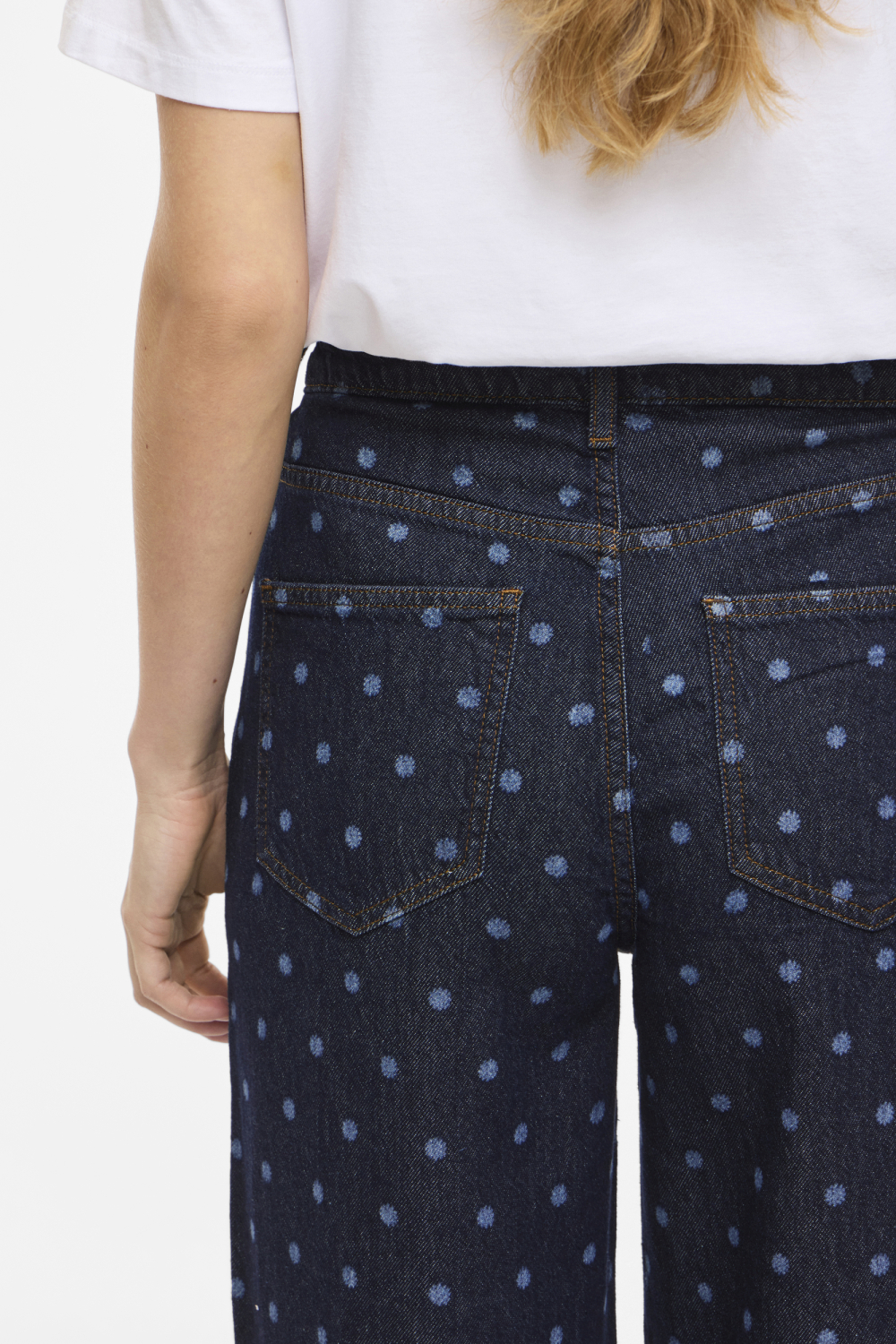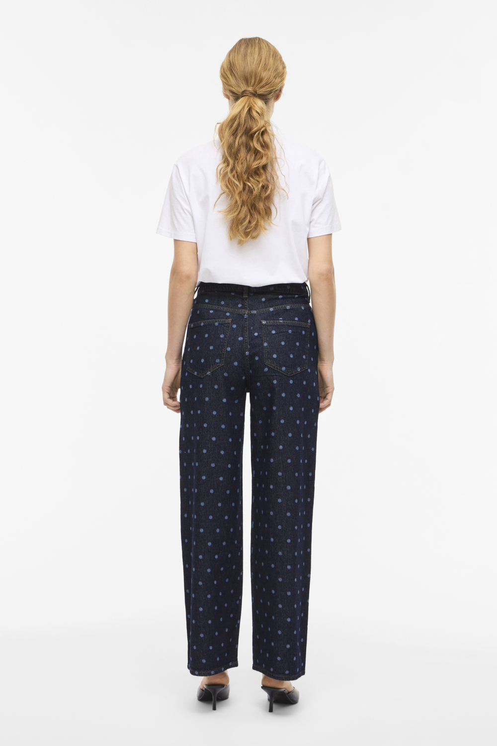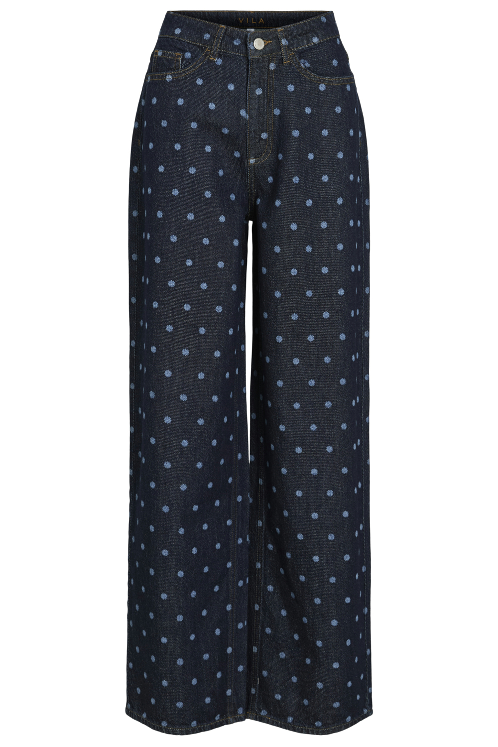 Deze dark blue denim jeans van Vila is een stijlvolle toevoeging aan je garderobe. De wide leg pasvorm biedt een eigentijdse look en zorgt voor ultiem comfort bij elke beweging. Het opvallende stippenpatroon verleent de jeans een speelse twist, terwijl de rinsewash finish zorgt voor een frisse, moderne uitstraling. Dankzij het high waist ontwerp en de stevige knoop/rits sluiting, is de jeans zowel flatterend als functioneel. Met zijn 5-pocket model biedt deze jeans voldoende opbergruimte en functionaliteit. Dit veelzijdige kledingstuk is ideaal voor diverse gelegenheden, van een casual dagje winkelen tot een relaxte avond met vrienden. Combineer deze Vila jeans eenvoudig met een basic T-shirt voor een moeiteloze, trendy look die perfect past bij de lente. Het duurzame 100% katoen materiaal verzekert je van langdurig plezier en comfort.