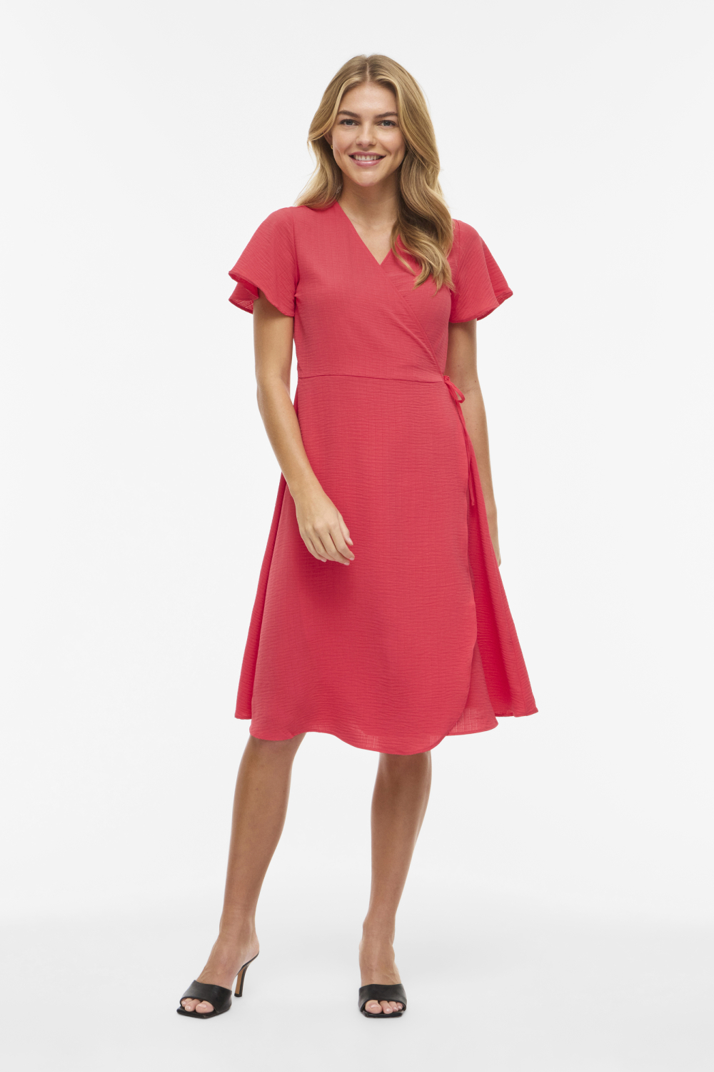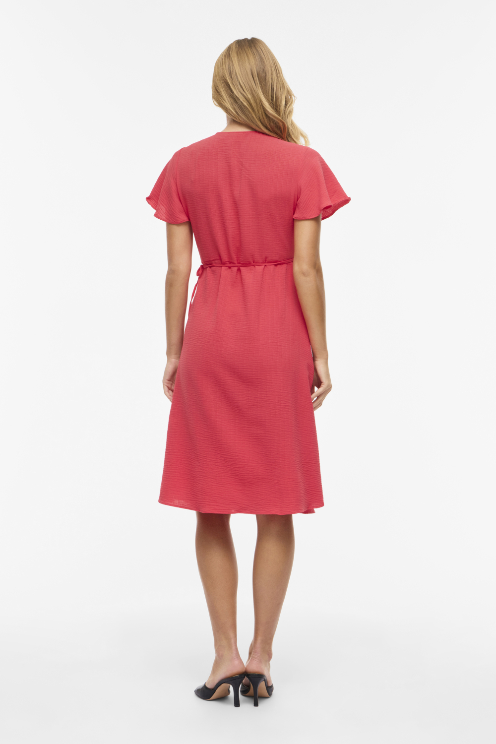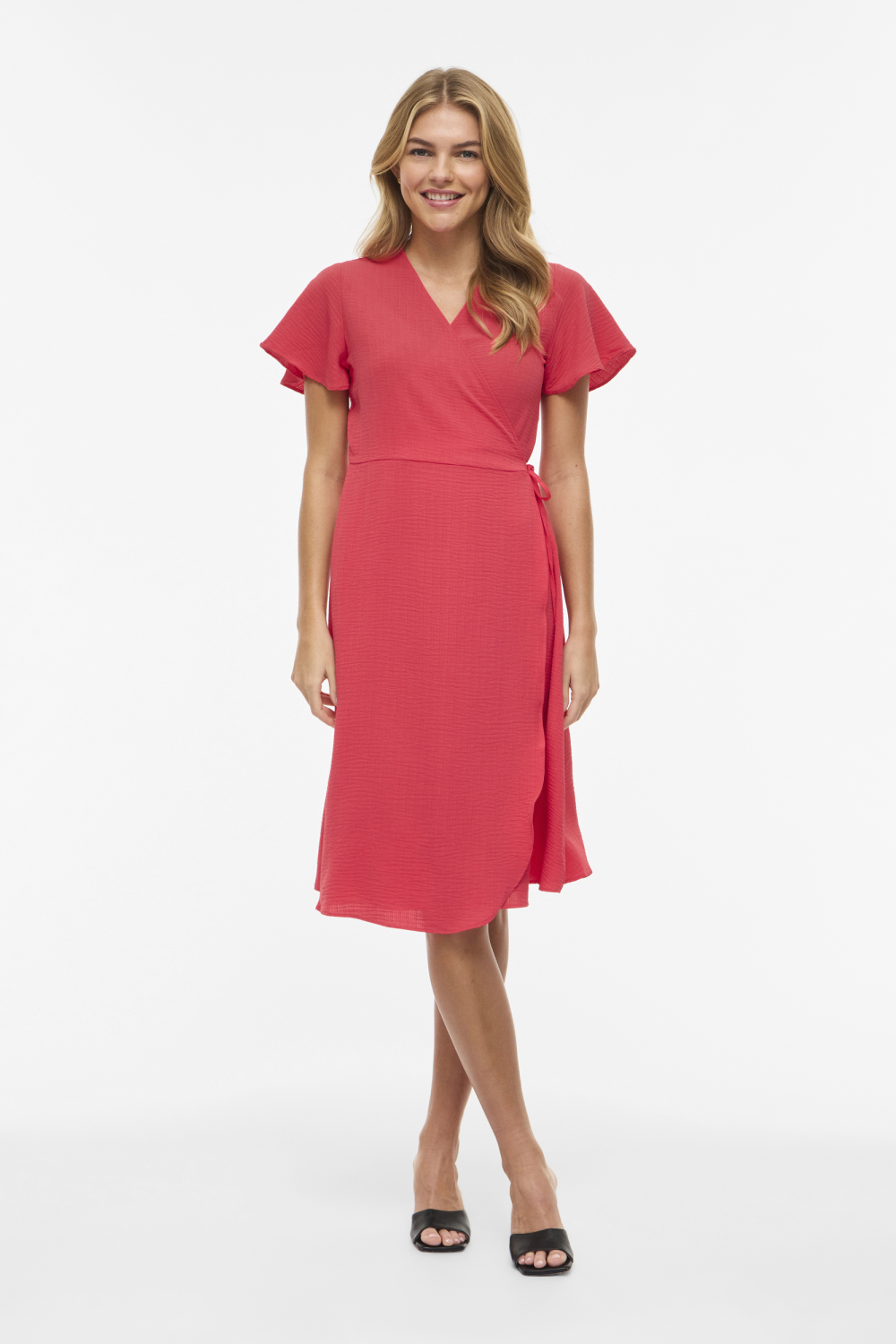 Deze stijlvolle hibiscus jurk van Vila is een veelzijdige toevoeging aan je garderobe. Gemaakt van 100% gerecycled polyester, zorgt deze duurzame jurk voor een aangenaam draagcomfort. De jurk heeft een regular fit en een overslaghals met een elegant strikkoord dat subtiel je taille accentueert. Met korte mouwen en een zwierige 7/8 lengte biedt het een perfecte balans tussen stijl en comfort. Deze casual jurk is ideaal voor dagelijks gebruik en is eenvoudig aan te trekken voor een ontspannen middag of een informele bijeenkomst. De levendige hibiscus kleur geeft de jurk een frisse en jeugdige uitstraling, terwijl de subtiele textuur in de stof zorgt voor een unieke touch. Of je nu een dagje gaat winkelen of een vriendinnenlunch hebt, deze Vila jurk past moeiteloos bij elke gelegenheid. Draag het met je favoriete sandalen voor een luchtige zomerse look, of combineer het met hakken voor een meer geklede uitstraling. Met zijn tijdloze design en veelzijdige kleur is deze jurk een aanwinst voor elke modebewuste vrouw. Meer informatie: De totale lengte is 108 cm bij maat 36.