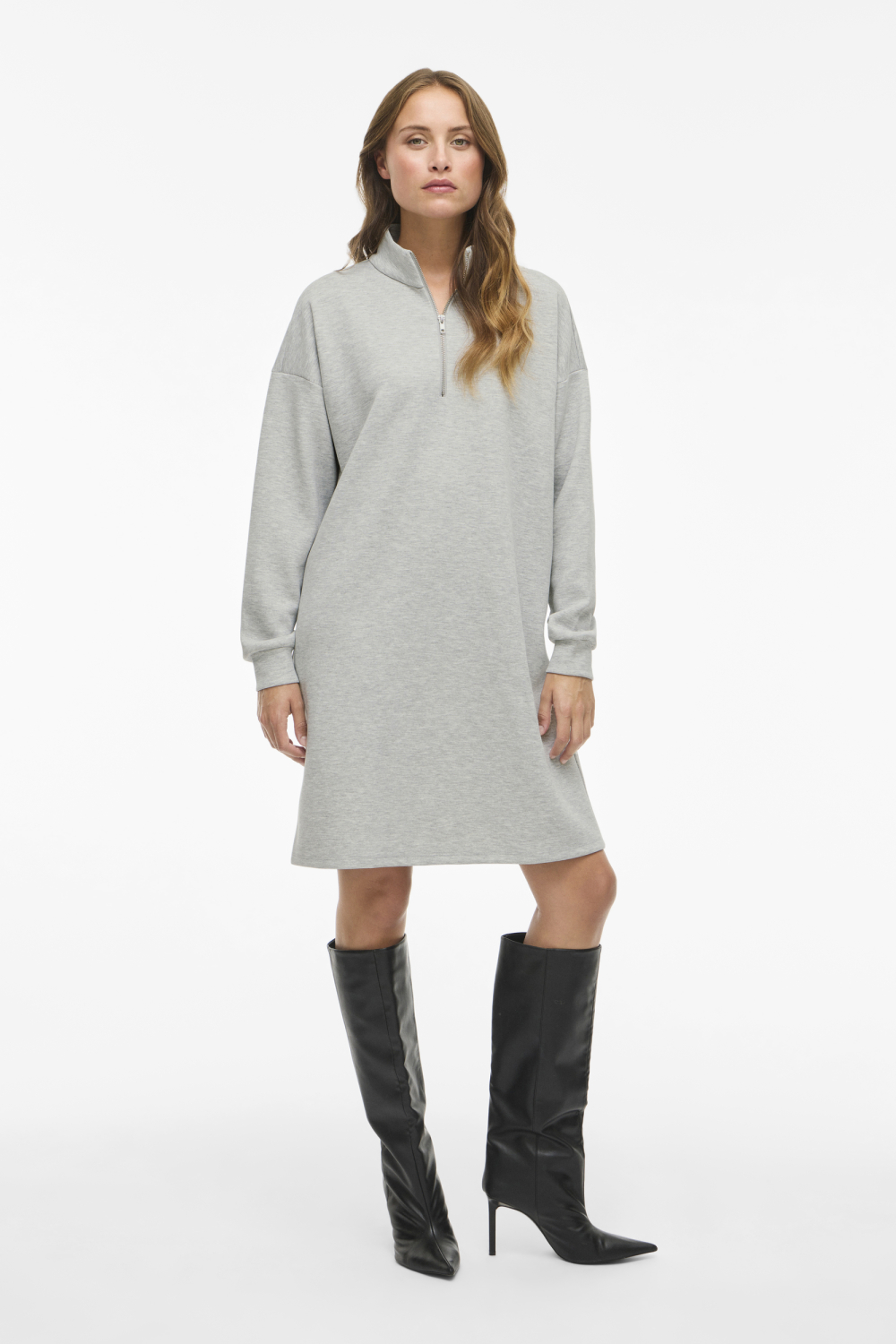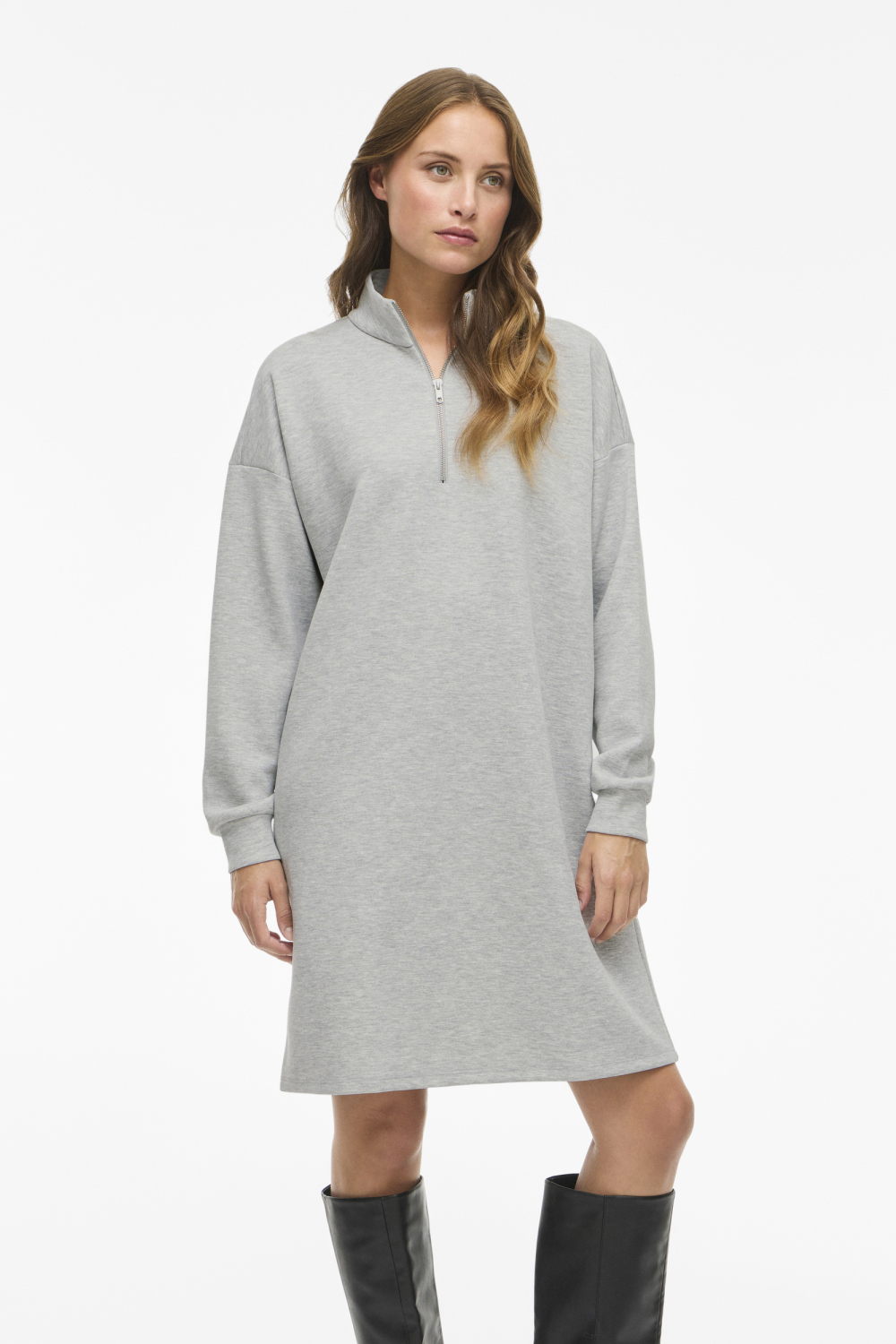 Deze casual jurk van Vila in een subtiele light grey melange tint is een stijlvolle en comfortabele toevoeging aan je herfstgarderobe. Gemaakt van een duurzame mix van 50% viscose, 44% polyester en 6% elastan, biedt deze jurk een prettige regular fit die soepel valt en makkelijk te dragen is. De halflange lengte en lange mouwen zorgen voor een warme uitstraling, terwijl de high neck met ritsdetail een moderne twist geeft. Perfect voor dagelijks gebruik, deze jurk past bij zowel een casual als een iets nettere stijl. Combineer hem met hoge laarzen voor een trendy look of draag hem met sneakers voor een relaxte, alledaagse outfit. Of je nu een dagje gaat shoppen of een ontspannen lunch hebt gepland, deze Vila jurk houdt je stijlvol en comfortabel. Het gemêleerde patroon voegt een extra dimensie toe en maakt het een veelzijdig item voor diverse gelegenheden. Meer informatie: De totale lengte is 91 cm bij maat S.