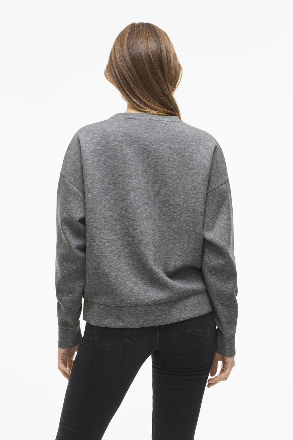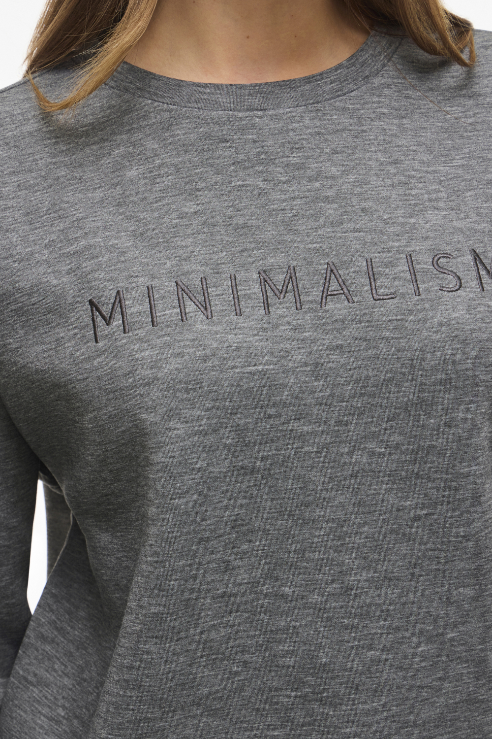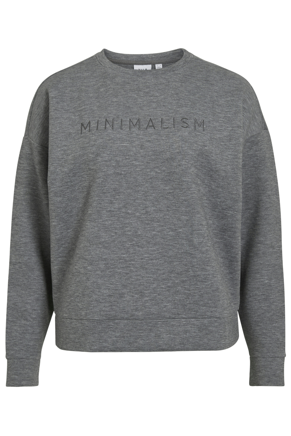 Deze Vila sweater in medium grey melange is de perfecte keuze voor een casual winterlook. Het zachte materiaal en de regular fit maken het een comfortabele keuze voor elke dag. De sweater heeft een subtiel tekstpatroon met 'MINIMALISM' op de borst, wat zorgt voor een eigentijdse uitstraling. De ronde hals en lange mouwen geven de trui een tijdloze en veelzijdige look, ideaal voor zowel een relaxte dag thuis als voor een informele ontmoeting met vrienden. Met zijn normale lengte past de Vila sweater makkelijk bij diverse outfits. Combineer hem met een donkere jeans en laarzen voor een stijlvolle urbane look, of draag hem met joggingbroeken en sneakers voor ultiem comfort. Door de grijze kleur is deze sweater niet alleen gemakkelijk te combineren, maar ook een duurzame keuze die je seizoen na seizoen kunt dragen. Voeg hem toe aan jouw wintergarderobe voor een moeiteloze stijl die past bij elke gelegenheid.