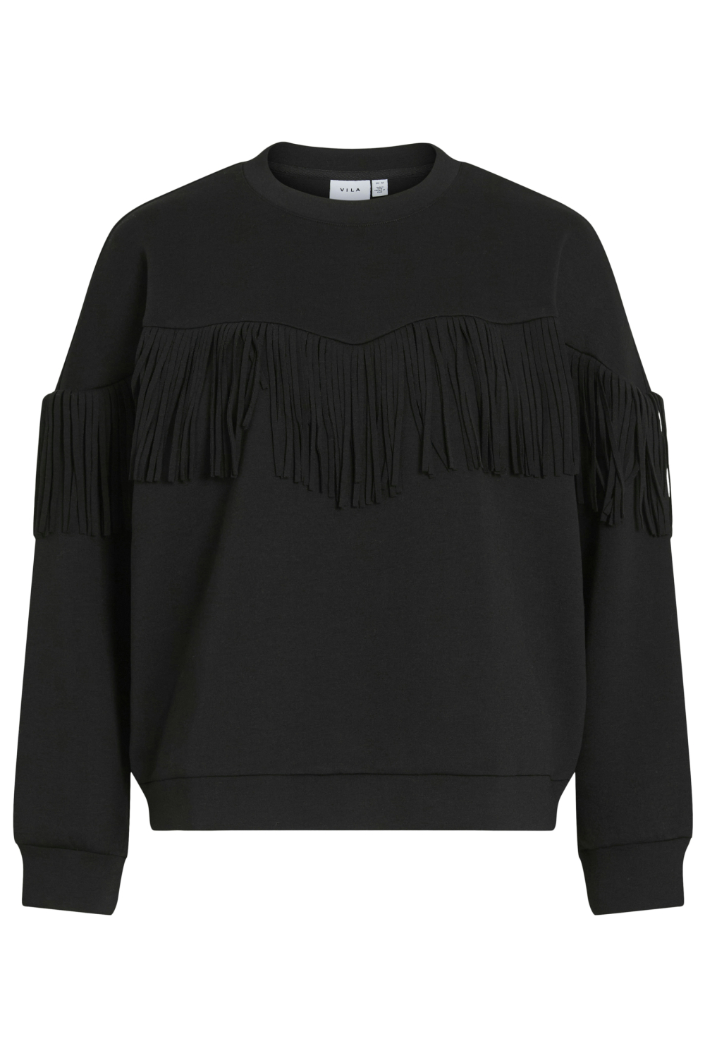 Deze casual sweater van Vila, uitgevoerd in de kleur Black Beauty, is een stijlvolle keuze voor je wintergarderobe. De sweater heeft een regular fit en is gemaakt van een comfortabele sweatstof, ideaal voor ontspannen dagen. De ronde hals en lange mouwen maken deze trui perfect voor een relaxed gevoel. Wat deze sweater echt bijzonder maakt, zijn de speelse franjes die over de borst en op de mouwen zijn geplaatst, wat een unieke twist geeft aan het alledaagse design. Met zijn veelzijdige uitstraling is deze Vila sweater gemakkelijk te combineren met zowel jeans als een nette broek, afhankelijk van de gelegenheid. Of je nu thuis blijft of een dagje de stad in gaat, deze trui biedt warmte en stijl in één. De normale lengte maakt hem geschikt voor diverse lichaamsvormen, terwijl de subtiele details een modieuze look garanderen. Voeg dit item toe aan je collectie en ervaar het comfort en de stijl van Vila in jouw dagelijkse outfits.