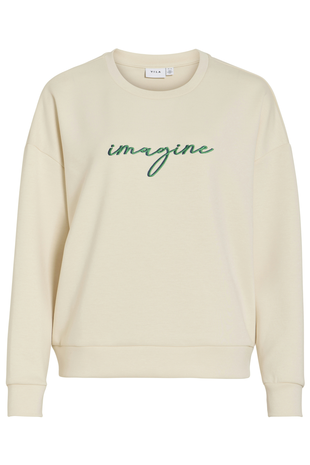 De Vila sweater in de kleur BIRCH/EMBROIDERY combineert comfort met een stijlvolle uitstraling. Met zijn regular fit pasvorm en ronde hals biedt deze trui een ontspannen gevoel, ideaal voor casual winterdagen. Het subtiele tekstpatroon "imagine" in een elegante groene tint geeft een speelse touch aan de lichte, neutrale basis. Het materiaal, een mix van polyester, viscose en elastan, zorgt voor een lichtgewicht, warm en uiterst comfortabel kledingstuk dat je gemakkelijk kunt dragen. Perfect voor informele gelegenheden, past deze sweater naadloos bij een jeans of een comfortabele broek. De lange mouwen en normale lengte maken het een veelzijdige keuze voor het koelere seizoen. Voeg deze duurzame Vila sweater toe aan je garderobe voor een look die zowel modern als tijdloos is. Of je nu een wandeling maakt of een ontspannen dag thuis hebt gepland, dit is jouw nieuwe favoriete stuk voor een ontspannen stijl met een vleugje elegantie.