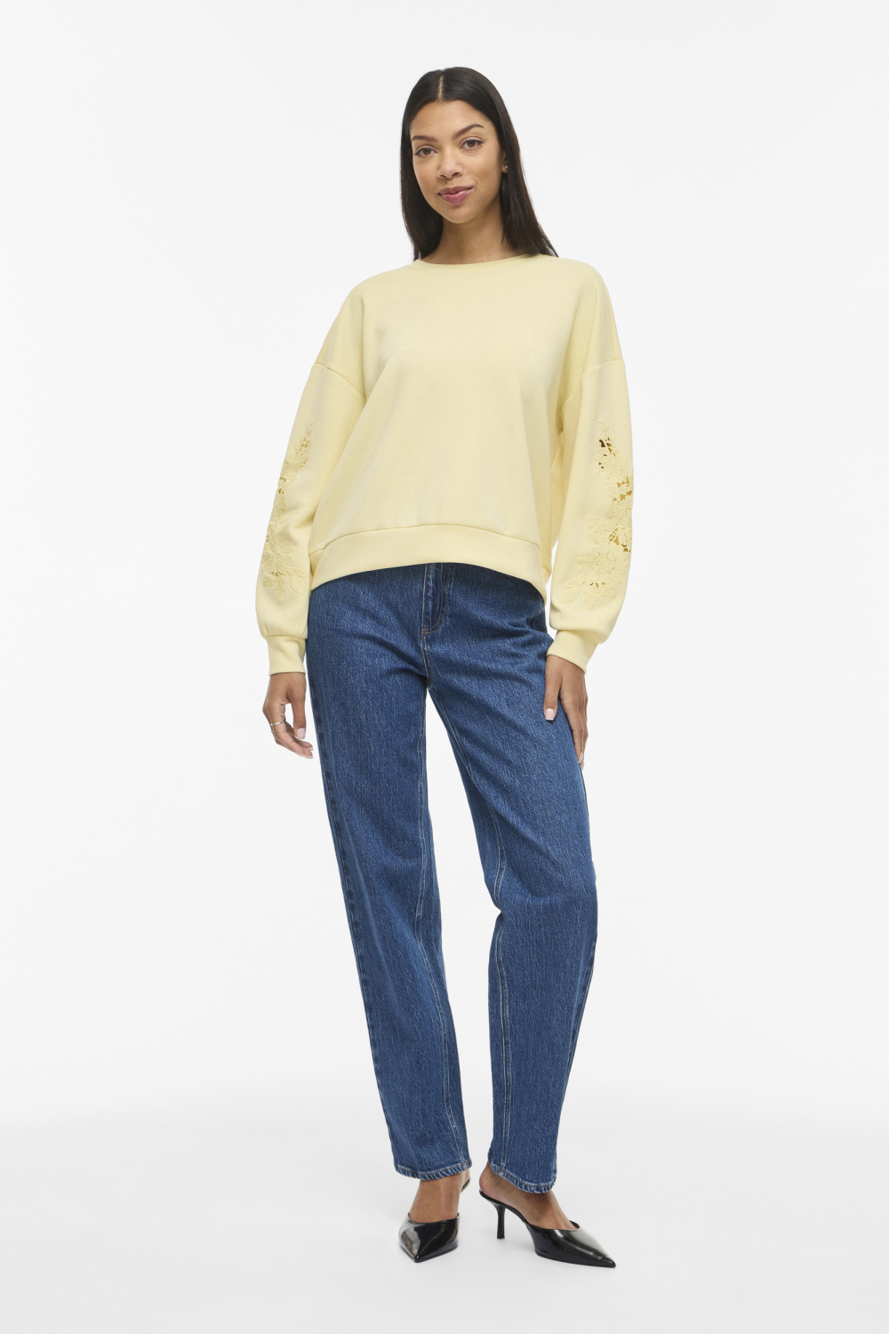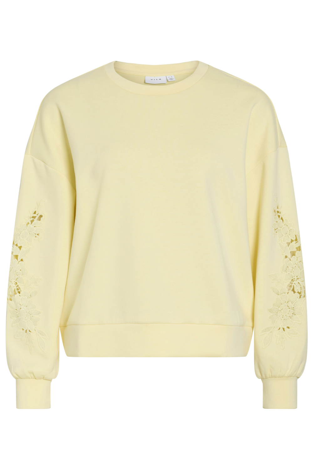 Deze stijlvolle Vila sweater in pastelgeel is een prachtige aanvulling op je voorjaarsgarderobe. Met een ronde hals en een regular fit zorgt deze trui voor een comfortabele, casual uitstraling. Opvallend zijn de ajourdetails op de mouwen, die een subtiele en elegante touch geven aan de sweater. De lange mouwen en de normale lengte maken dit item perfect voor de frisse lentedagen. De Vila sweater straalt eenvoud en stijl uit, waardoor je hem moeiteloos kunt combineren met je favoriete jeans voor een alledaagse look. Of je nu een ontspannen weekendje weggaat of een dagje in de stad plant, deze trui is een veelzijdige keuze die je outfit een zachte kleurtoets geeft. Doordat het materiaal duurzaam is, draag je met deze sweater niet alleen iets moois, maar maak je ook een verantwoorde keuze. Een fijne trui om keer op keer te dragen.