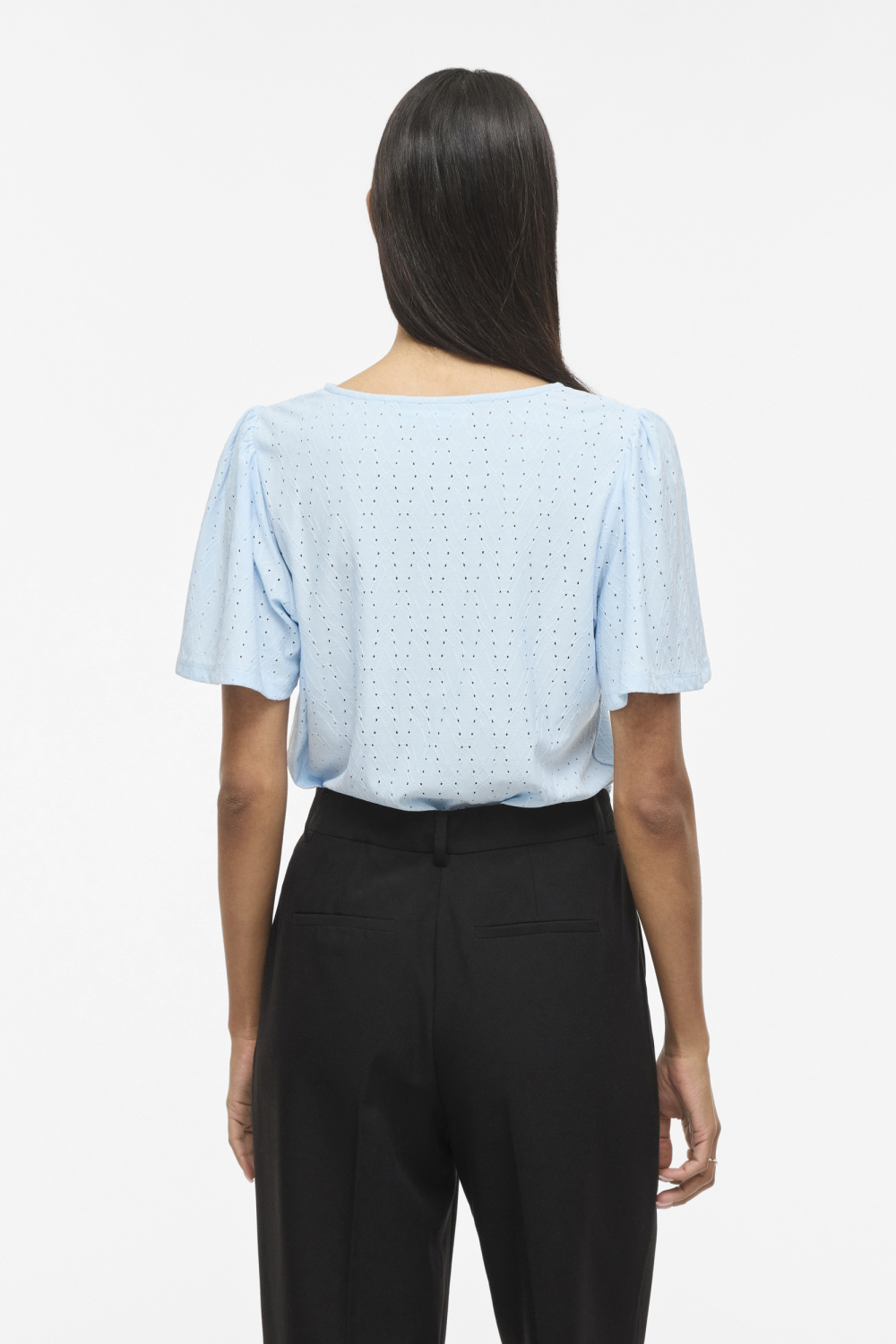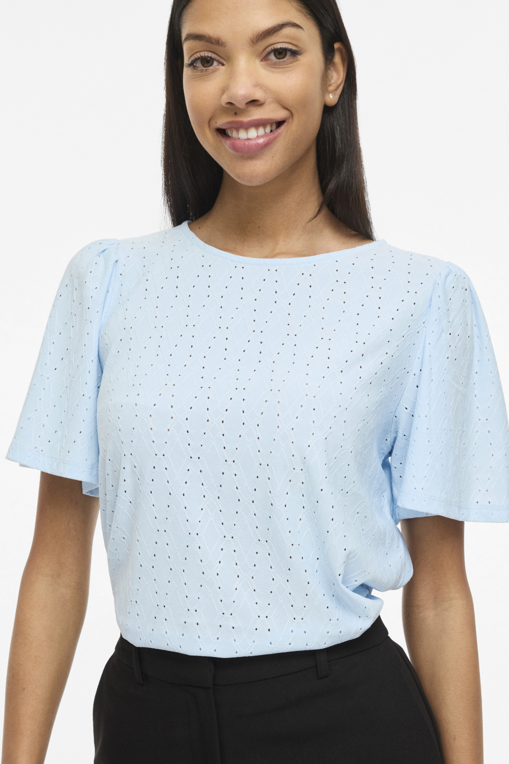 Dit mooie Vila T-shirt voor dames in de kleur Nantucket Breeze is een veelzijdige aanvulling op je garderobe. Met een regular fit en Ajour-patroon biedt dit T-shirt een subtiele en verfijnde uitstraling. De ronde halslijn en korte mouwen geven het een casual uitstraling, ideaal voor dagelijkse activiteiten. De zachte stof van 95% polyester en 5% elastaan zorgt voor comfort en flexibiliteit, terwijl de normale lengte perfect is om zowel in als uit je broek te dragen. Dankzij het tijdloze en stijlvolle ontwerp past dit Vila T-shirt moeiteloos bij verschillende outfits. Combineer het met een nette pantalon voor een chique uitstraling, of draag het op een jeans voor een meer relaxte look. Dit T-shirt is een uitstekende keuze voor zowel informele als semi-formele gelegenheden, en biedt je de vrijheid om je persoonlijke stijl tot uitdrukking te brengen in elk seizoen.