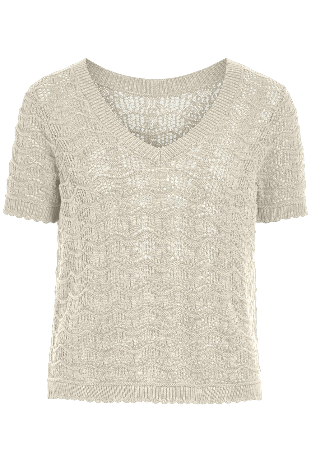 Dit stijlvolle Vila T-shirt voor dames, in de subtiele tint Birch, is een perfecte aanvulling voor je zomergarderobe. Met zijn regular fit en unieke ajourpatroon biedt dit T-shirt een ongecompliceerde doch elegante uitstraling. De V-hals en korte mouwen geven het een luchtige en vrouwelijke touch, ideaal voor warme dagen. Gemaakt van 100% organisch katoen, voel je je niet alleen comfortabel maar draag je ook bij aan een duurzamere wereld. De veelzijdigheid van dit Vila T-shirt maakt het geschikt voor uiteenlopende gelegenheden. Draag het casual op een jeans voor een ontspannen dagje uit, of combineer het met een rok voor een meer verzorgde look. Het normale ontwerp sluit perfect aan zonder in te boeten aan comfort of stijl. Of je nu een lunch met vrienden hebt gepland of een wandeling langs de kust, met dit T-shirt straal je nonchalante elegantie uit.