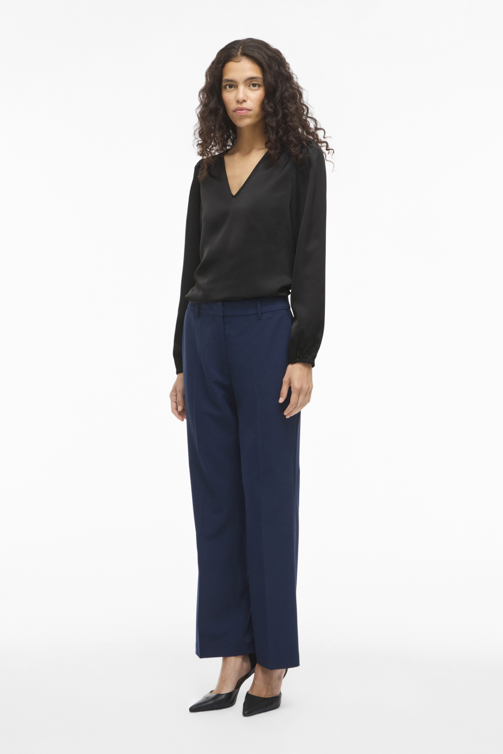 Deze veelzijdige zwarte blouse van Vila is een elegante aanvulling op je garderobe. Het is gemaakt van 100% polyester, wat zorgt voor een lichte en toch stevige stof die comfortabel aanvoelt op de huid. De blouse heeft een regular pasvorm en is voorzien van een klassiek reverskraag. De V-hals voegt een subtiel vrouwelijk accent toe, waardoor de blouse perfect is voor zowel informele als formele gelegenheden. De lange mouwen eindigen in elastische boorden, wat een moderne touch geeft aan het tijdloze ontwerp. Met zijn verfijnde uitstraling is deze Vila blouse een uitstekende keuze voor diverse situaties. Draag het met een nette broek voor een dag op kantoor of combineer het met een spijkerbroek voor een stijlvolle, casual look op een avondje uit. Dankzij de knoopsluiting kun je de look gemakkelijk aanpassen. De blouse in de basiskleur zwart is een klassieker die niet mag ontbreken in je kledingcollectie. Of je nu naar een zakelijke meeting gaat of een ontspannend diner hebt, met deze blouse voel je je altijd goed gekleed.