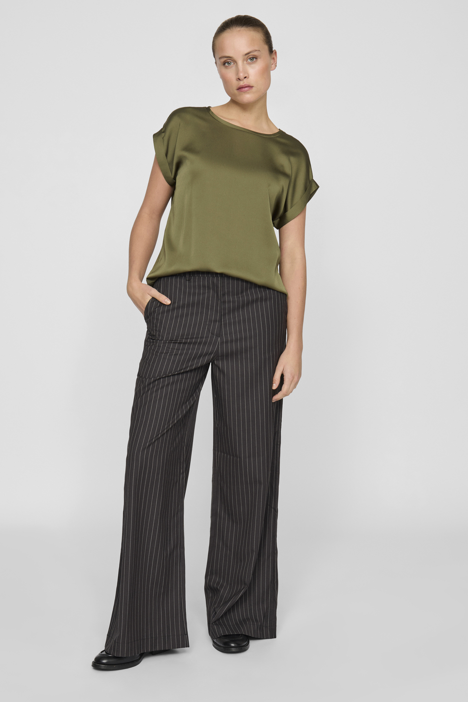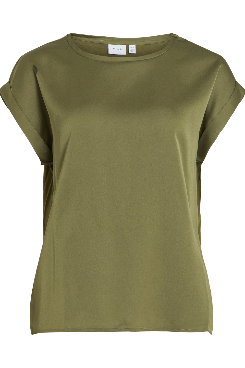 T shirt van Vila met korte mouwen en een ronde hals. Dit model heeft aan de voorkant een satijnlook. De achterkant is gemaakt van jerseystof.