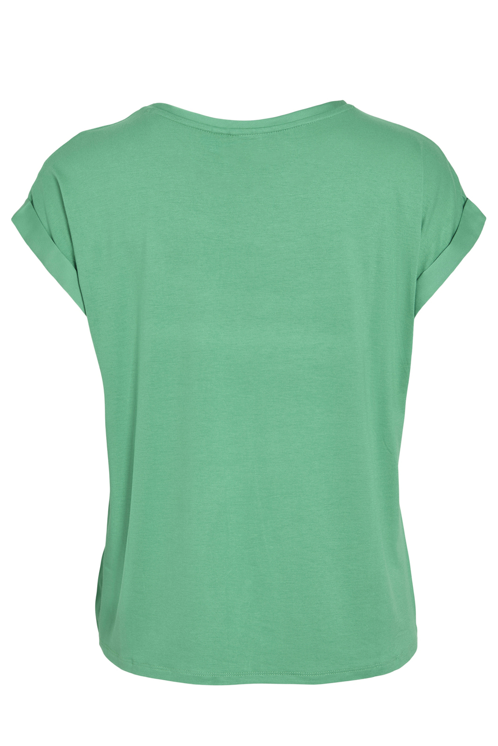 Dit Vila T-shirt in de frisse kleur 'Winter Green' is een perfecte aanvulling voor je zomerse garderobe. Met zijn regular fit en ronde hals biedt het een comfortabele en luchtige pasvorm, ideaal voor warme dagen. Dit casual T-shirt is vervaardigd uit 100% gerecycled polyester, waardoor het niet alleen stijlvol maar ook duurzaam is. De korte mouwen zijn afgewerkt met een subtiele omslag, wat een speelse touch geeft aan het geheel. De normale lengte maakt het makkelijk te combineren met zowel jeans als een rok, afhankelijk van de gelegenheid. Of je nu een dagje naar het park gaat of een informele bijeenkomst hebt, dit Vila T-shirt past zich moeiteloos aan jouw dag aan. Door de neutrale, maar toch opvallende kleur kun je het shirt eenvoudig combineren met andere kledingstukken, terwijl je een moderne en frisse uitstraling behoudt. Dit veelzijdige en milieuvriendelijke T-shirt mag niet ontbreken in je zomergarderobe.