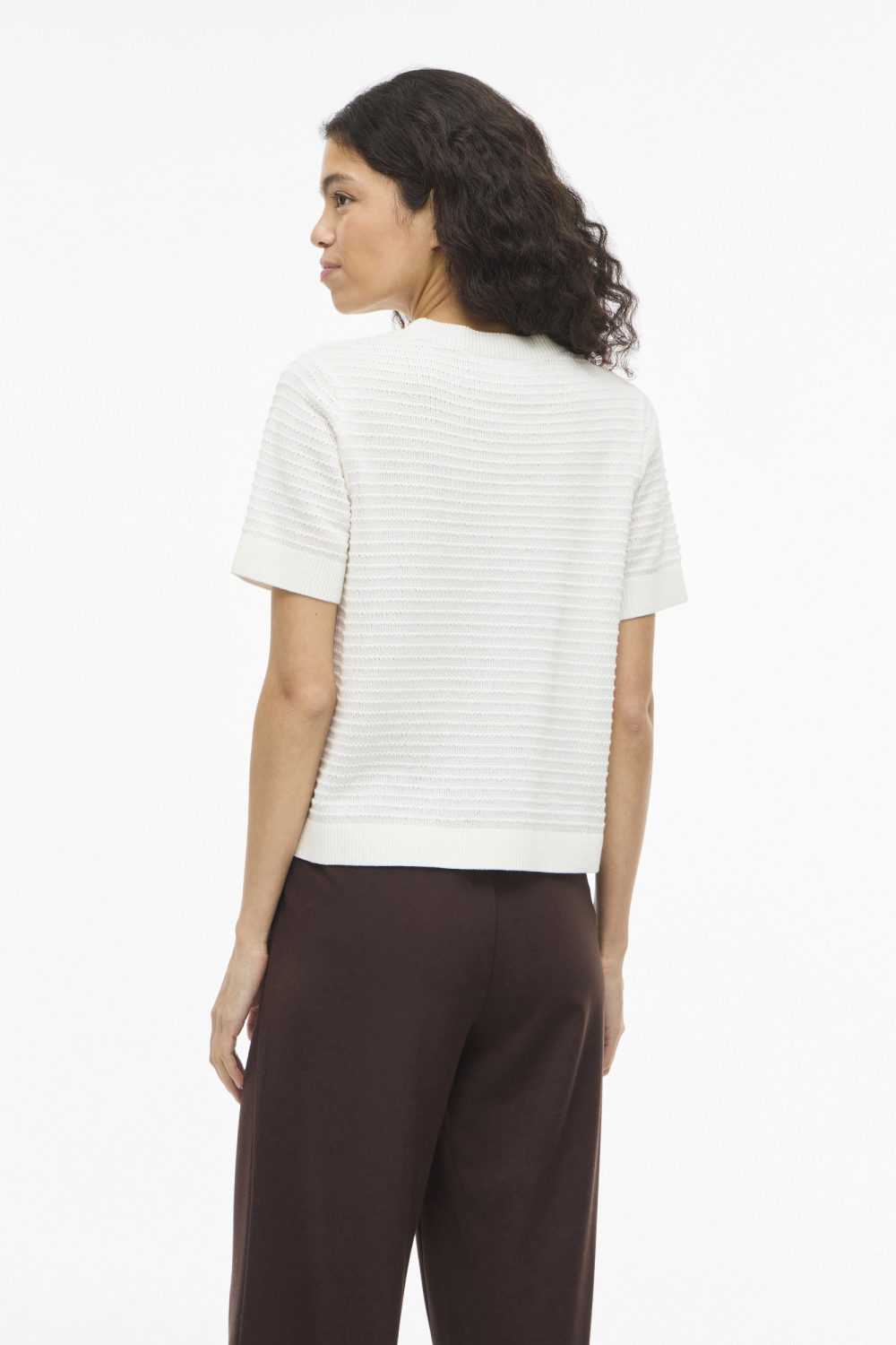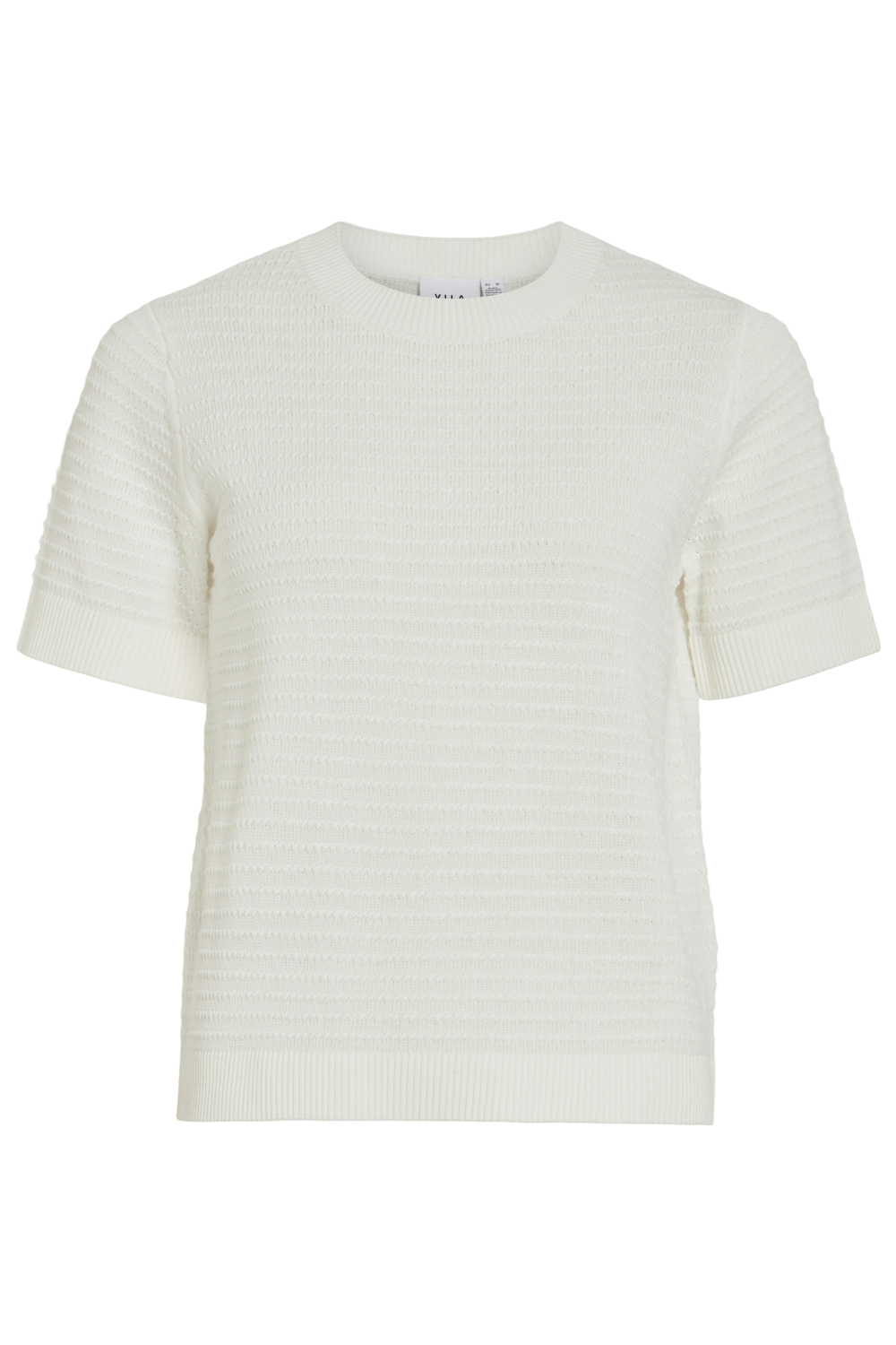 Dit Vila T-shirt in de kleur White Alyssum is een subtiele en veelzijdige toevoeging aan je garderobe. Gemaakt van 100% biologisch katoen, biedt het een duurzame keuze die heerlijk aanvoelt op de huid. Het T-shirt heeft een ronde hals en een regular pasvorm, waardoor het comfortabel zit en perfect is voor casual dagen. De korte mouwen en het gestructureerde patroon geven het shirt een modieuze twist, terwijl de normale lengte zorgt voor een klassieke uitstraling. Dit knitwear-stijl T-shirt past moeiteloos bij verschillende gelegenheden. Draag het met een casual jeans voor een dagje uit, of combineer het met een nette rok voor een meer formele setting. Dankzij de tijdloze witte kleur en de subtiele textuur, kun je dit item makkelijk combineren en het hele jaar door dragen. Of je nu naar een ontspannen lunch gaat of gewoon thuis wilt ontspannen, dit T-shirt van Vila is een betrouwbare keuze.