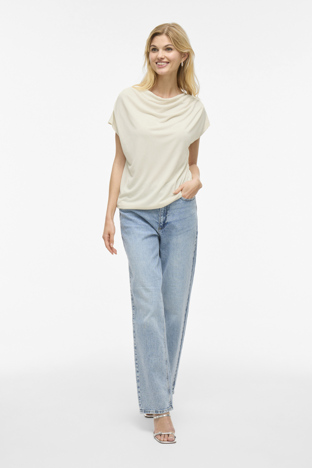 Dit stijlvolle birch T-shirt van Vila is een perfecte toevoeging aan je herfstgarderobe. Met zijn casual uitstraling en regular fit biedt het comfort en veelzijdigheid. De kapmouwtjes en ronde hals geven dit shirt een moderne twist, terwijl de nonchalante plooien aan de voorkant zorgen voor een subtiele, speelse look. Het materiaal van 70% Modal en 30% Polyester maakt het shirt licht en ademend, ideaal voor dagelijks gebruik. Het normale model en de neutrale kleur van dit T-shirt maken het geschikt voor allerlei gelegenheden, van een middagje shoppen tot een informele lunch met vrienden. Combineer het met je favoriete jeans voor een ontspannen look of draag het onder een blazer voor een extra vleugje elegantie. Dit veelzijdige stuk past perfect in een duurzame garderobe en biedt eindeloos veel combinatiemogelijkheden.