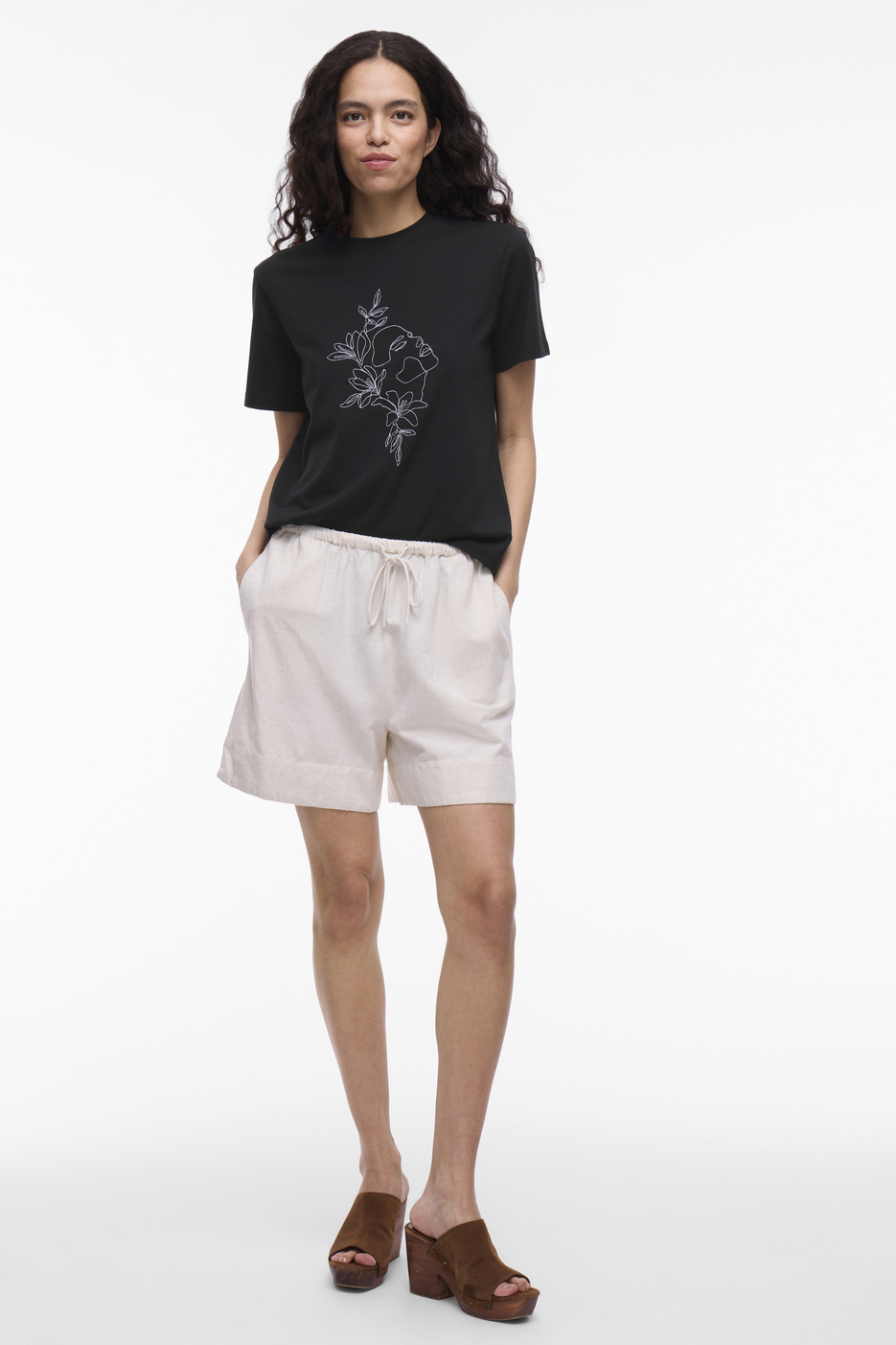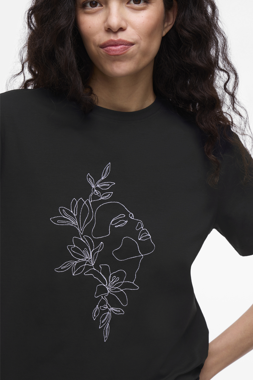 Dit casual dames T-shirt van Vila is een subtiele toevoeging aan je zomergarderobe. Het zwarte shirt, gemaakt van 96% katoen en 4% elastan, biedt een zacht en comfortabel gevoel, perfect voor warme dagen. De regular fit zorgt voor een ontspannen pasvorm, terwijl de ronde hals en korte mouwen een klassieke uitstraling geven. De bloemenprint aan de voorkant voegt een kunstzinnige touch toe, waardoor dit T-shirt niet alleen comfortabel maar ook stijlvol is.