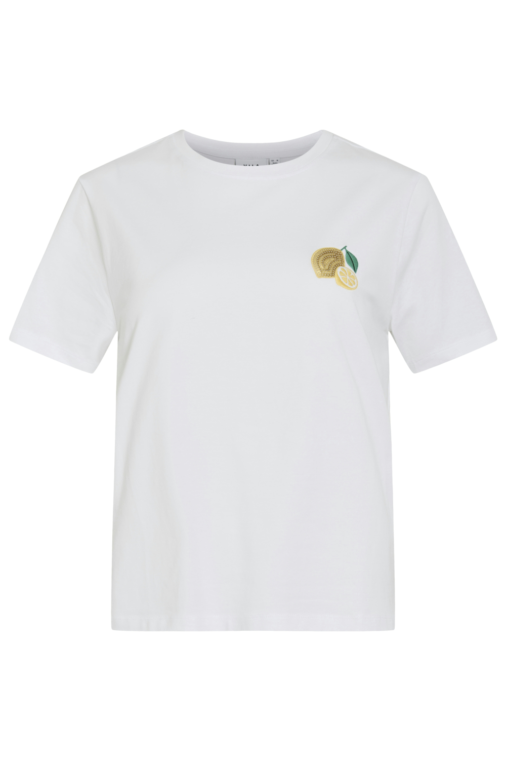 Dit stijlvolle witte T-shirt van Vila combineert casual charme met een speelse twist dankzij de opvallende citroenpailletten op de borst. Het is vervaardigd uit een mix van 96% biologisch katoen, 15% viscose en 4% elastan, wat zorgt voor een comfortabele regular fit. De ronde hals en korte mouwen maken het perfect voor de warme zomermaanden. Dit duurzame dames T-shirt past gemakkelijk in je dagelijkse garderobe en biedt een vleugje vrolijkheid aan je outfit. Of je nu een dagje de stad in gaat of ontspannen wilt genieten in het park, het Vila T-shirt is een veelzijdige keuze. De normale lengte past goed bij zowel een strakke jeans als een luchtige rok, waardoor je eindeloos kunt combineren. De subtiele maar levendige details maken het ook geschikt voor informele bijeenkomsten of een gezellige lunch met vrienden. Voeg dit smaakvolle item toe aan je collectie en ervaar de combinatie van comfort en stijl.