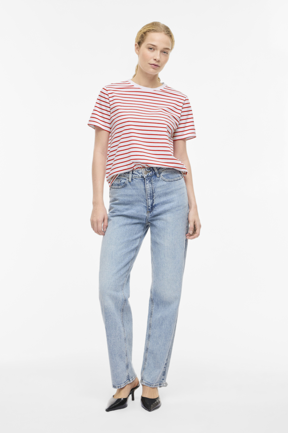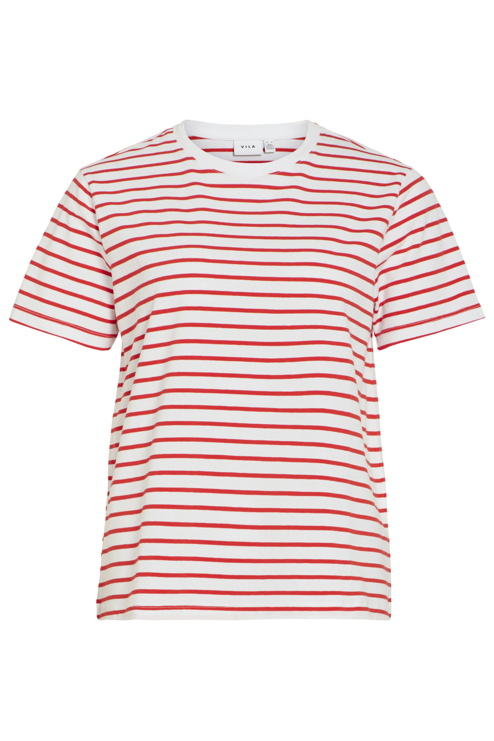 Dit casual T-shirt van Vila is een veelzijdige keuze voor je lentegarderobe. Met zijn opvallende rode strepen op een witte achtergrond straalt het een frisse en tijdloze stijl uit. De ronde halslijn en de korte mouwen maken het ideaal voor een relaxte dag in de zon. Gemaakt van een mix van biologisch katoen, viscose en elastaan, zorgt dit T-shirt voor een zachte en comfortabele pasvorm die mooi aansluit zonder te strak te zitten. De regular fit en normale lengte zorgen ervoor dat het T-shirt gemakkelijk te combineren is met zowel een casual jeans als een nette rok. Of je nu een dagje uitgaat of een ontspannen weekend thuis hebt, dit Vila T-shirt biedt een moeiteloze stijl die past bij verschillende gelegenheden. Dankzij de duurzame stofcombinatie blijft het T-shirt prachtig, zelfs na veelvuldig dragen. Voeg deze essentials toe aan je garderobe voor een zorgeloos stijlvolle look.