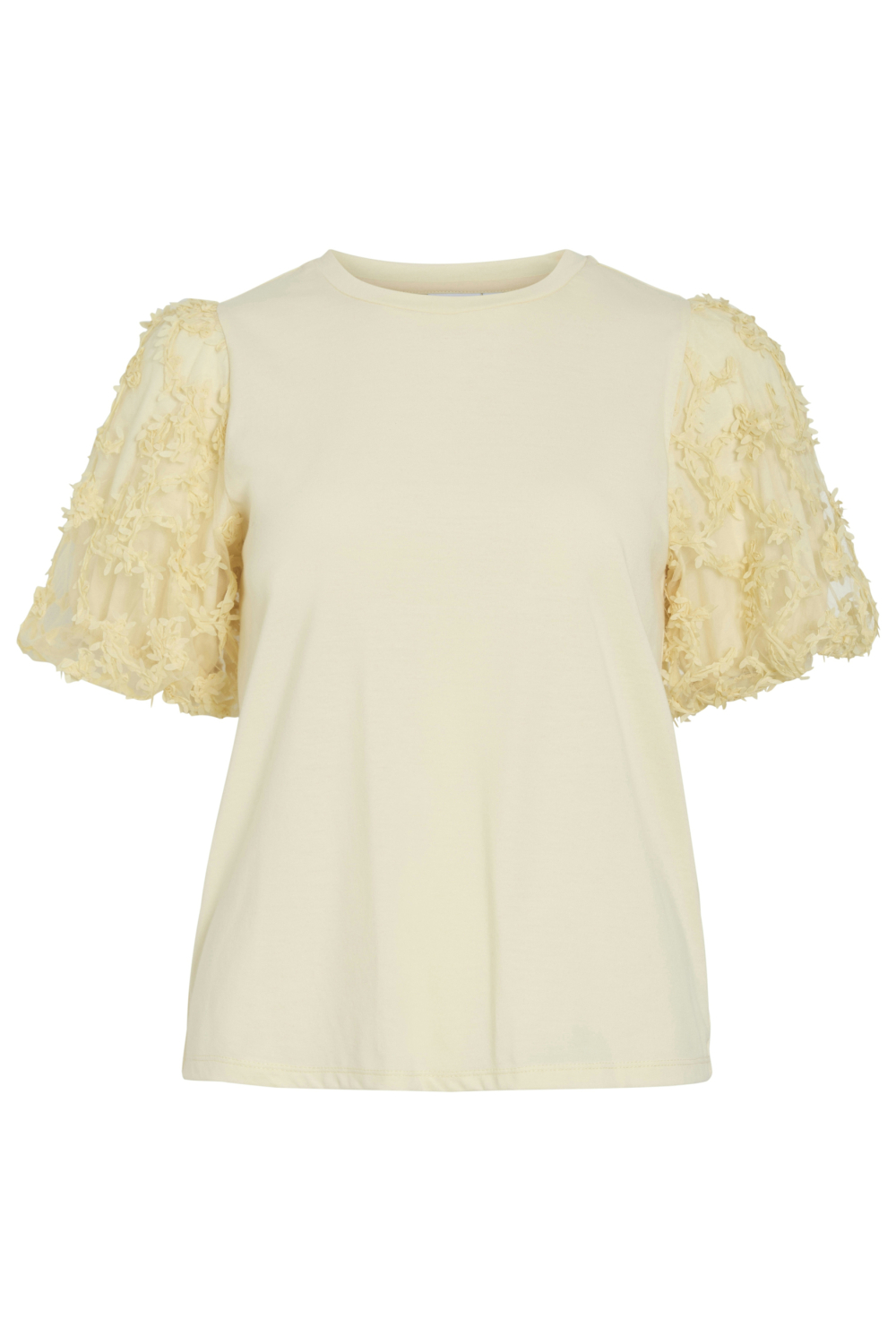 Dit elegante dames T-shirt van Vila in de kleur Pastel Yellow is een subtiele en stijlvolle keuze voor je lentegarderobe. Het shirt heeft een regular fit en is vervaardigd uit een comfortabele mix van 60% katoen en 40% polyester, waardoor het zacht aanvoelt op de huid. De ronde hals en korte mouwen met verfijnde kanten details geven dit T-shirt een modieuze twist die perfect is voor informele gelegenheden. Dit Vila T-shirt is ideaal voor een ontspannen dagje uit of een casual ontmoeting met vrienden. De unieke kanten mouwen voegen een vleugje flair toe aan je alledaagse look, terwijl de normale lengte en het lichte materiaal zorgen voor draaggemak en luchtigheid. Combineer het met een lichte jeans of een rok voor een complete, trendy outfit die je zelfverzekerd laat voelen, of je nu in de stad bent of geniet van een zonnige middag in het park.