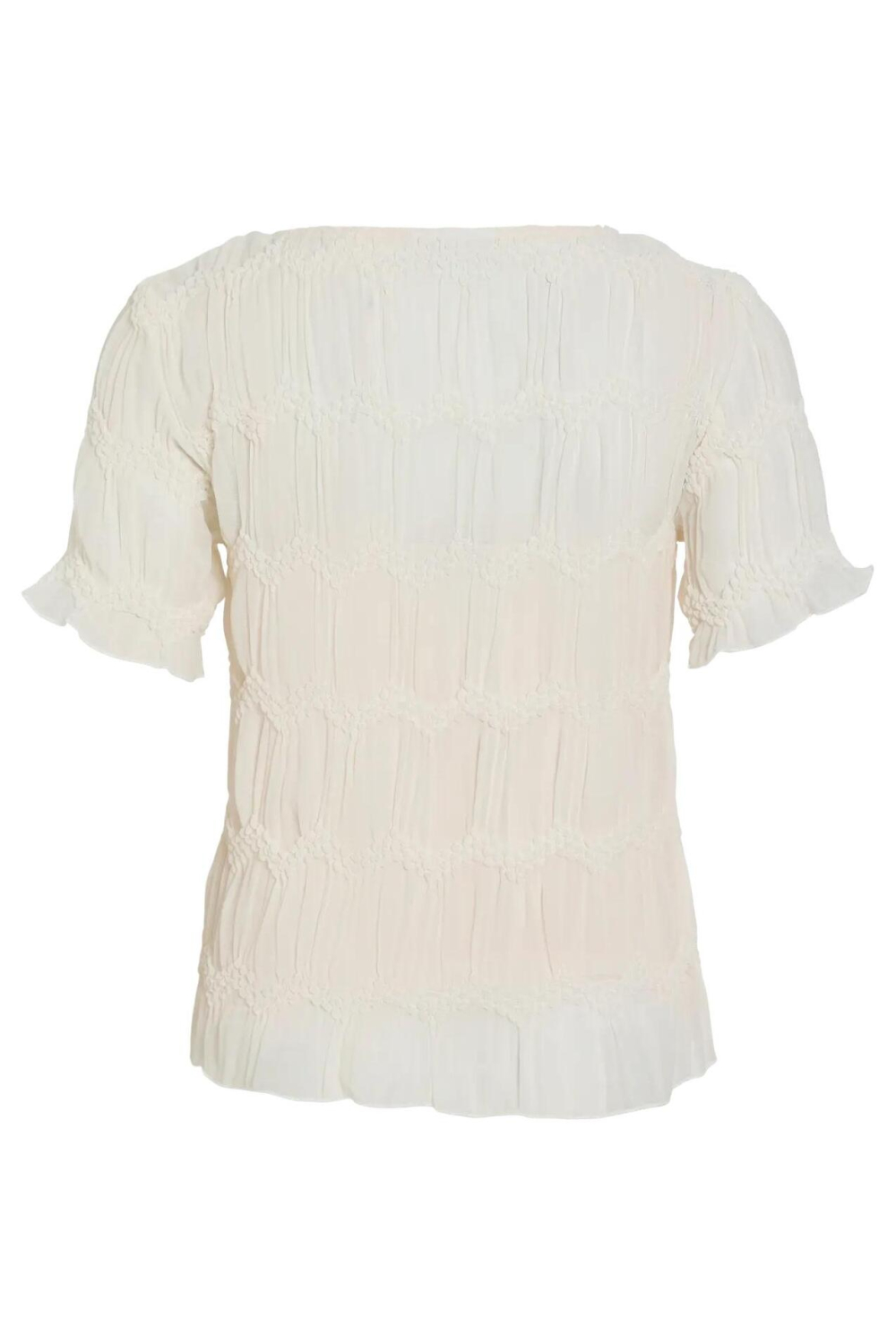 Dit veelzijdige T-shirt voor dames van Vila, in de kleur birch, is een elegante toevoeging aan je zomergarderobe. Het is vervaardigd van 100% polyester, wat zorgt voor een lichte, ademende stof die je koel en comfortabel houdt tijdens warmere dagen. De regular fit en normale lengte maken dit shirt geschikt voor diverse lichaamsvormen en geven het een tijdloze uitstraling. Met een subtiele, gestructureerde patroon en een ronde hals biedt het T-shirt een speels en verfijnd accent dat moeiteloos bij verschillende stijlen past. Dankzij de korte mouwen is dit Vila T-shirt ideaal voor casual gelegenheden, zoals een ontspannen dagje uit of een gezellig brunch met vrienden. De zachte, licht doorschijnende stof en de geplooide details geven een verfijnde twist aan je look. Draag het met een lichte jeans of een zwierige rok voor een moeiteloos elegante outfit. Dit T-shirt combineert comfort met stijl, en is een ongecompliceerde keuze die je steeds opnieuw kunt dragen.