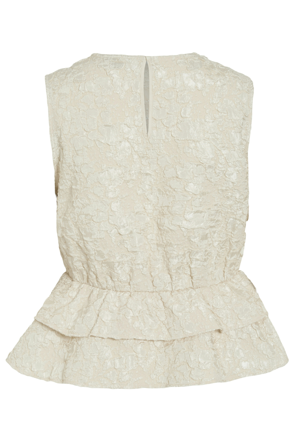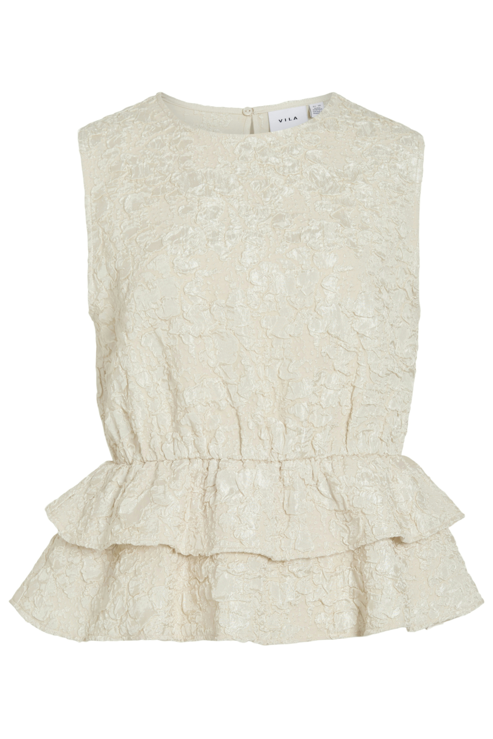 Deze elegante top van Vila in de kleur birch is een veelzijdig stuk dat niet mag ontbreken in je garderobe. Met een regular pasvorm en gemaakt van 100% polyester, past de top perfect voor een casual herfstdag. Het ontwerp valt op door de bijzondere structuur en de dubbele ruches aan de onderkant, wat het geheel een subtiele vrouwelijke touch geeft. De ronde halslijn en het mouwloze ontwerp maken het ideaal voor zowel een laagjescasual look als een nettere setting. Draag deze Vila top tijdens een ontspannen brunch met vrienden of combineer hem met een blazer voor een meer geklede uitstraling. De knoopsluiting aan de achterkant zorgt voor eenvoudig aan- en uitkleden. Dankzij de subtiele tint kun je de top makkelijk stylen met verschillende kleuren, van donkere denim tot lichte rokken. Door zijn normale lengte is de top eenvoudig te combineren met zowel hoge als lage broeken. Maak je herfstoutfits compleet met dit veelzijdige kledingstuk van Vila.
