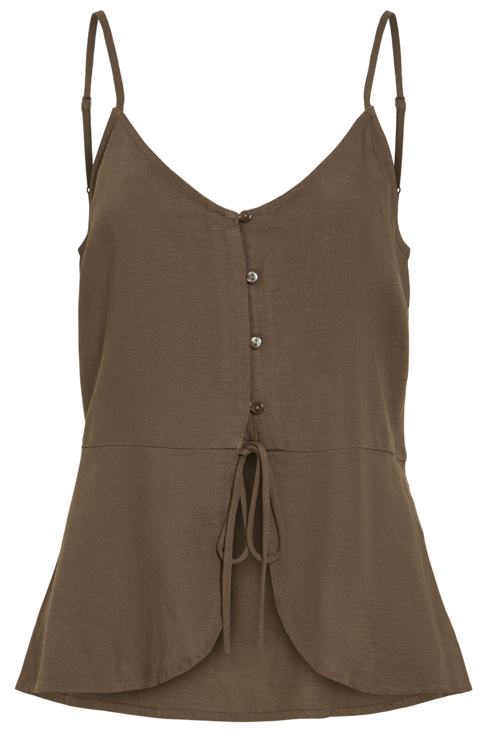 Deze casual top van Vila is een veelzijdige aanvulling voor je zomercollectie. De regular fit top is uitgevoerd in de kleur SLATE BLACK en beschikt over een stijlvolle V-hals met spaghettibandjes. De knoopsluiting aan de voorkant, samen met een subtiele strikdetail, geeft de top een elegante touch. Gemaakt voor dames die comfort zoeken zonder in te boeten op stijl, is deze top ideaal voor informele gelegenheden en stranddagen. Met zijn normale lengte biedt de top een comfortabele pasvorm die perfect is voor zomerse dagen. Combineer het bijvoorbeeld met een luchtige short voor een ontspannen look of met een rok voor een chiquere uitstraling. Het duurzame materiaal maakt het niet alleen een verantwoorde keuze, maar ook een trendy toevoeging aan je garderobe. Of je nu een middag in de stad doorbrengt of een wandeling maakt langs de boulevard, deze Vila top is de perfecte partner.