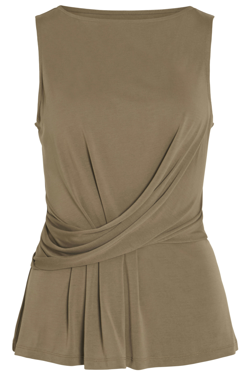 Deze elegante top van Vila is een veelzijdige toevoeging aan je zomergarderobe. De top heeft een eigentijdse aardtint met een boothals die een moderne twist toevoegt. Dankzij de combinatie van 70% Modal Tencel en 30% Polyester biedt deze mouwloze top een zacht en comfortabel gevoel op de huid, ideaal voor warme dagen. De slim fit pasvorm accentueert je figuur subtiel, terwijl de geplooide details aan de zijkant een verfijnde uitstraling geven. De Vila top is een uitstekende keuze voor casual gelegenheden en één die je makkelijk kunt combineren met andere items. Draag het met een strakke jeans voor een eenvoudige, maar stijlvolle look tijdens een lunch met vrienden of kies voor een nette broek voor een informele werkdag. De duurzaamheid van het materiaal maakt hem niet alleen stijlvol, maar ook nog eens een bewuste keuze. Of je nu een drukke dag op kantoor hebt of een ontspannen brunch in de stad, deze top biedt comfort en een vleugje verfijning.