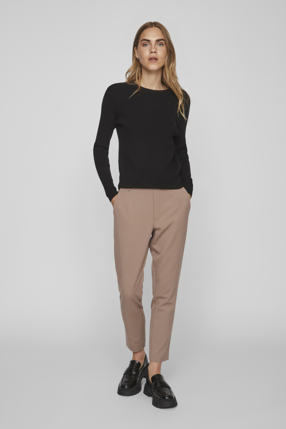 Deze zwarte trui van Vila is een onmisbaar stuk in je garderobe. Met een regular fit en een ronde hals biedt deze trui een tijdloze basis voor elke outfit. De ribstructuur voegt subtiele textuur toe, terwijl de combinatie van viscose, polyester en polyamide zorgt voor een comfortabele en duurzame draagervaring. De lange mouwen en normale lengte maken het een veelzijdige keuze voor elk seizoen. Of je nu naar kantoor gaat of een casual avond met vrienden hebt gepland, deze trui combineert moeiteloos stijl met gemak.