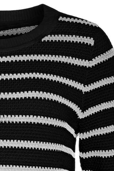 De Vila trui heeft een normale lengte en lange mouwen die ideaal zijn voor de koelere zomeravonden. Het patroon van zwart-witte strepen geeft een klassieke uitstraling die makkelijk te combineren is met jeans of een lichte rok voor een subtiele, maar toch opvallende look. Deze trui biedt de perfecte balans tussen stijl en comfort, waardoor hij een uitstekende keuze is voor iedereen die waarde hecht aan mode en duurzaamheid.