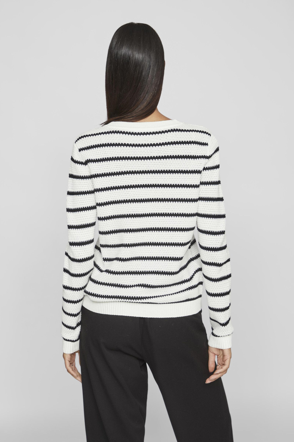 Deze stijlvolle witte trui met zwarte strepen van Vila is een veelzijdige toevoeging aan je zomergarderobe. De trui is gemaakt in een regular fit, waardoor hij comfortabel en toch flatterend aanvoelt. Met de klassieke ronde hals en lange mouwen biedt deze trui de perfecte balans tussen casual en chic, wat hem geschikt maakt voor tal van gelegenheden. Het streepjespatroon van de White Alyssum/Black kleurstelling geeft een tijdloos en fris uiterlijk dat makkelijk te combineren is met verschillende stijlen.