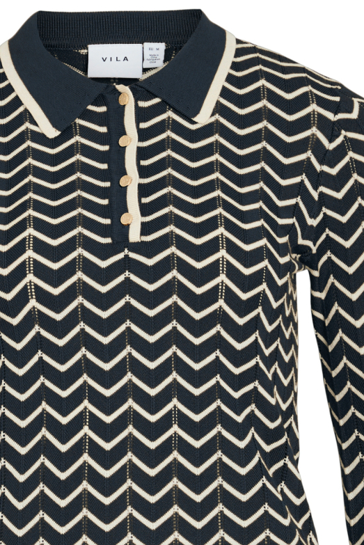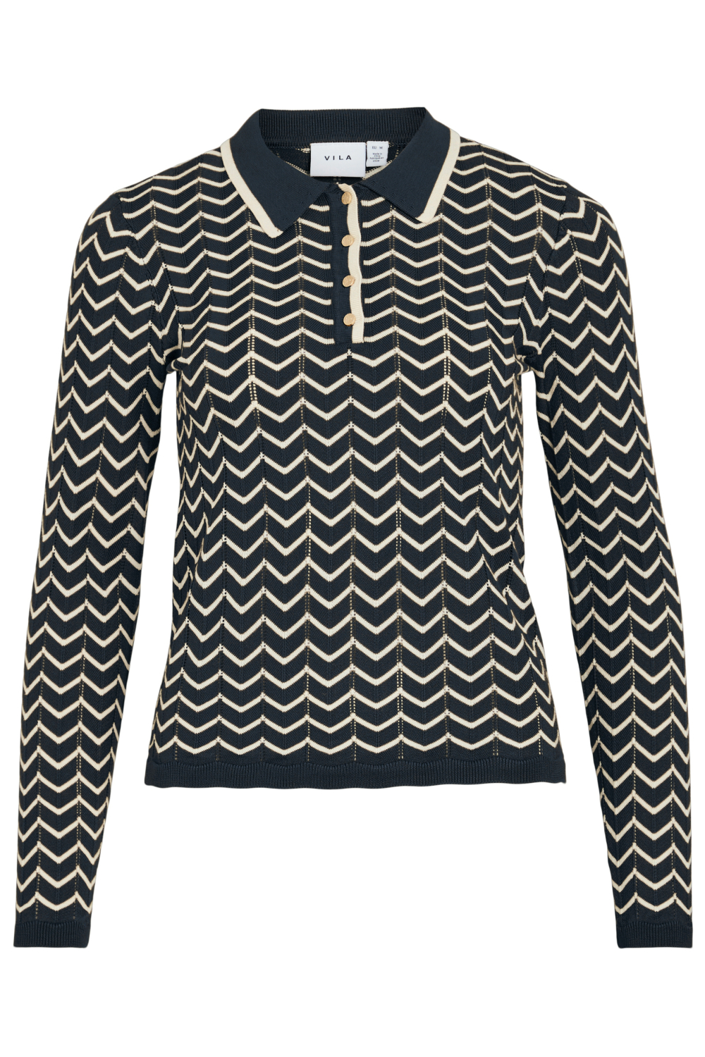 Deze charmante Vila trui in NAVY BLAZER/BIRCH is een perfecte keuze voor elk moment in de winter. Het ajourpatroon geeft de trui een verfijnde uitstraling die zorgt voor een unieke touch in je garderobe. Met een regular fit pasvorm en gemaakt van een zachte mix van 70% viscose en 30% polyester, biedt deze trui het comfort dat je zoekt tijdens de koudere dagen. De puntkraag en knoopsluiting voegen een speelse, toch klassieke twist toe waarmee je diverse looks kunt creëren. Of je nu naar kantoor gaat of een weekendje weg plant, deze Vila trui is eenvoudig te combineren met zowel een casual jeans als een stijlvolle rok. De lange mouwen en normale lengte maken het een veelzijdig stuk dat je moeiteloos kunt dragen naar verschillende gelegenheden. Voeg een extra laagje warmte toe aan je outfit terwijl je stijlvol blijft met deze prachtige Vila trui.