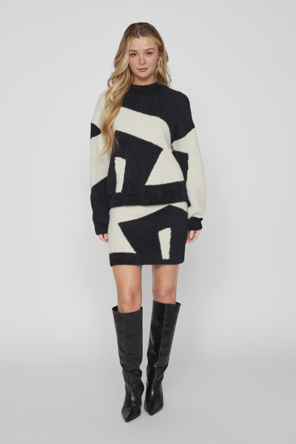 Deze stijlvolle trui van Vila is een perfecte aanvulling op jouw wintergarderobe. De trui combineert een opvallend zwart-wit patroon met een comfortabele regular fit, ideaal voor dagelijks gebruik. Met een materiaalcombinatie van 51% acryl en 49% nylon, voelt de trui zacht aan en biedt deze voldoende warmte tijdens de koudere dagen. De hoge hals en de lange mouwen maken het een geschikte keuze voor zowel casual als meer geklede gelegenheden.