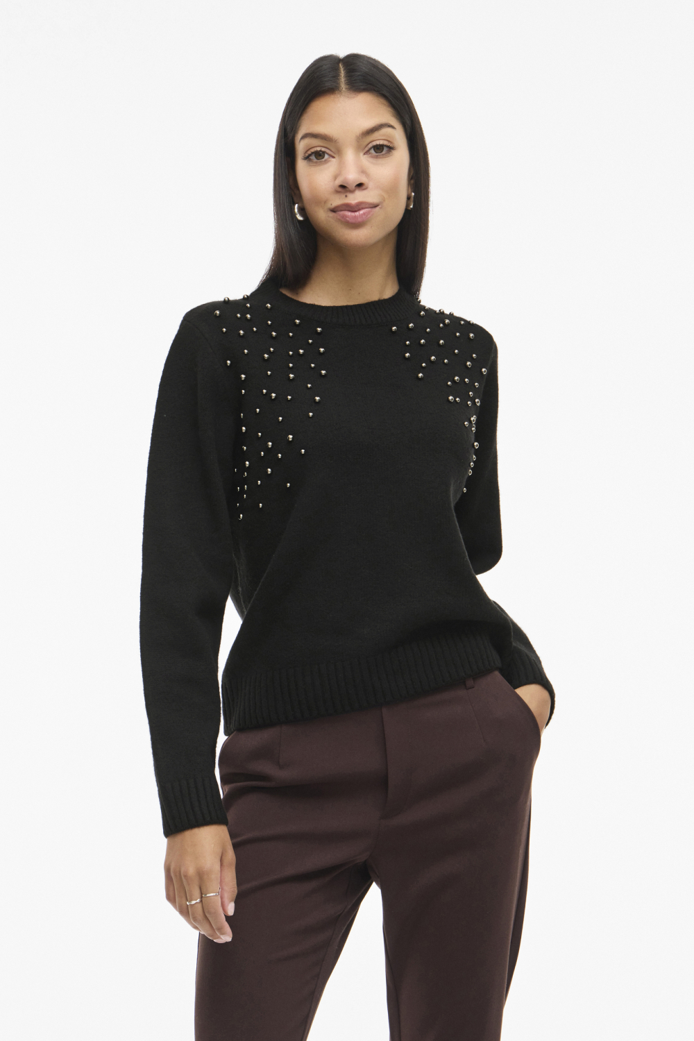 Deze stijlvolle zwarte trui van Vila is een elegante aanvulling op je wintergarderobe. Het opvallende patroon van pareltjes zorgt voor een eigentijdse look, perfect voor verschillende gelegenheden. Gemaakt van een comfortabele mix van polyester, acryl, nylon en elastan, biedt deze knitwear trui je niet alleen stijl, maar ook draagcomfort. Met de ronde hals en lange mouwen is deze trui geschikt voor zowel een dag op kantoor als een avondje uit. De normale lengte en regular fit zorgen ervoor dat je de trui eenvoudig kunt combineren met een nette broek of een casual jeans. Dit maakt het een veelzijdig stuk voor iedere vrouw. Of je nu warme sferen wilt creëren bij een open haard of indruk wilt maken tijdens een diner, deze Vila trui past zich moeiteloos aan jouw stijl aan. Voeg een vleugje glamour toe aan je outfit en geniet van de duurzame kwaliteit die Vila biedt.