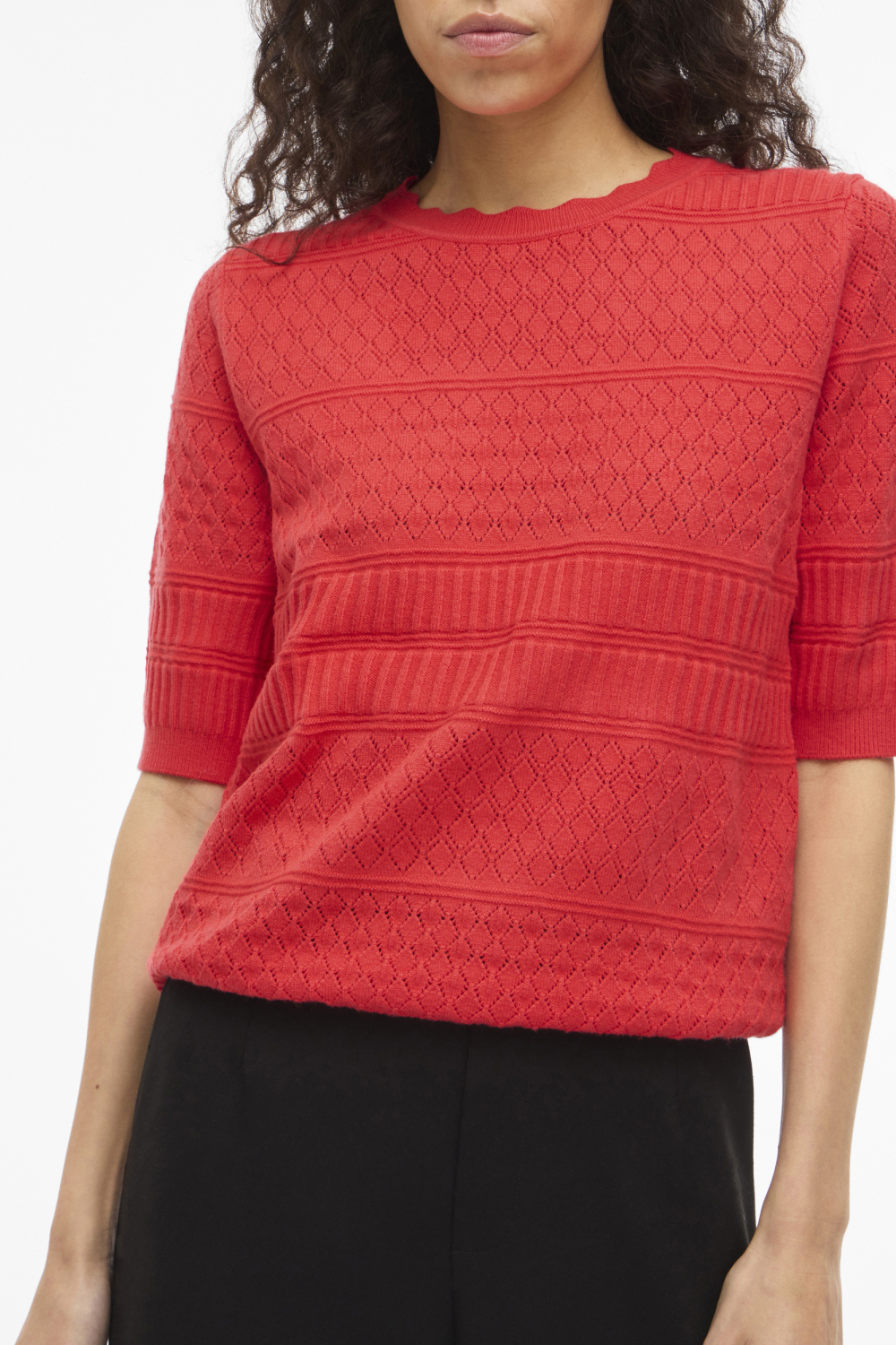 De Vila Knitwear trui in de opvallende kleur Hibiscus is een elegante keuze voor jouw garderobe. Met een regular fit pasvorm en gemaakt van een zachte mix van viscose, polyester, en polyamide, biedt deze trui zowel comfort als stijl. De speelse ajourpatroon in de stof voegt subtiele details toe, terwijl de ronde hals de trui een klassieke uitstraling geeft. De trui heeft een normale lengte en lange mouwen, waardoor hij geschikt is voor elke dag. Deze veelzijdige trui van Vila is perfect voor diverse gelegenheden. Combineer hem met een nette pantalon voor een zakelijke look, of draag hem casual met een jeans wanneer je er ontspannen uit wilt zien. Het tijdloze ontwerp maakt de trui eenvoudig te combineren met verschillende stijlen. Of je nu een dag op kantoor hebt of een avondje uit gaat, deze knitwear is een betrouwbare keuze die elke outfit compleet maakt, zonder dat je veel moeite hoeft te doen.