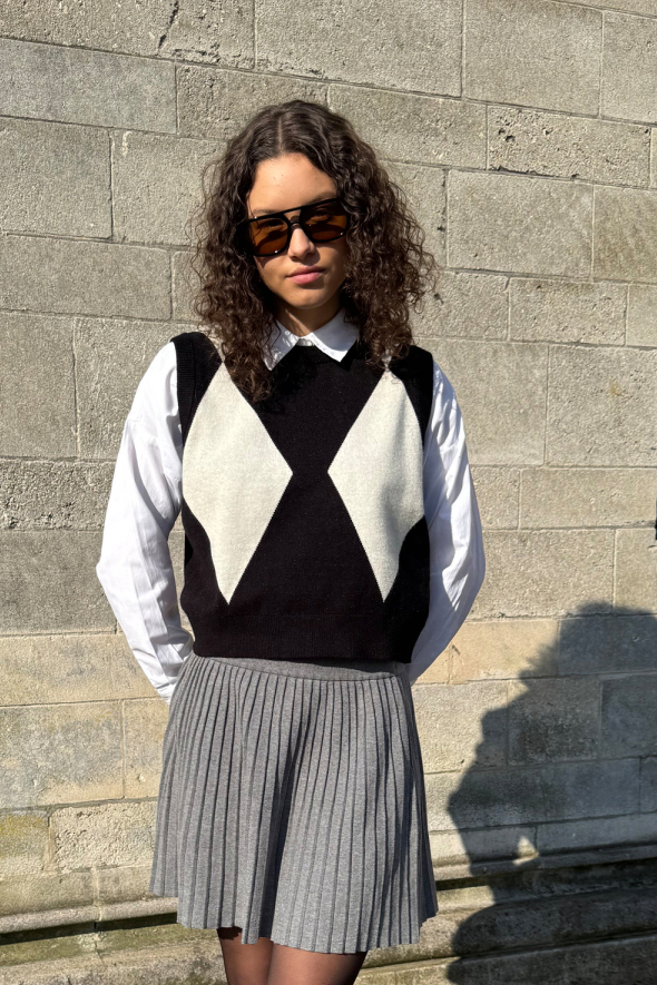 Deze stijlvolle trui van Vila is een veelzijdige aanwinst voor je wintergarderobe. Uitgevoerd in de kleur Black Beauty/Birch, zorgt het zwart-witte ruitpatroon voor een eigentijdse uitstraling die opvalt. De regular fit pasvorm en het mouwloze design maken deze trui perfect om te combineren met een blouse voor een gelaagde look. Dankzij de ronde hals en de comfortabele materiaalsamenstelling van 50% viscose, 28% polyester en 22% polyamide, biedt deze trui zowel warmte als stijl voor de koudere seizoenen. Of je nu op kantoor bent of een casual dag gepland hebt, deze Vila trui is een stijlvolle keuze. Door het tijdloze patroon en de normale lengte is hij eenvoudig te combineren met een rok of een broek. Perfect voor een dag op kantoor of een weekenduitje met vrienden. Het duurzame karakter van de trui maakt het niet alleen een modebewuste, maar ook een verantwoorde keuze. Voeg dit veelzijdige stuk toe aan je garderobe en geniet van het comfort en de stijl die het biedt.
