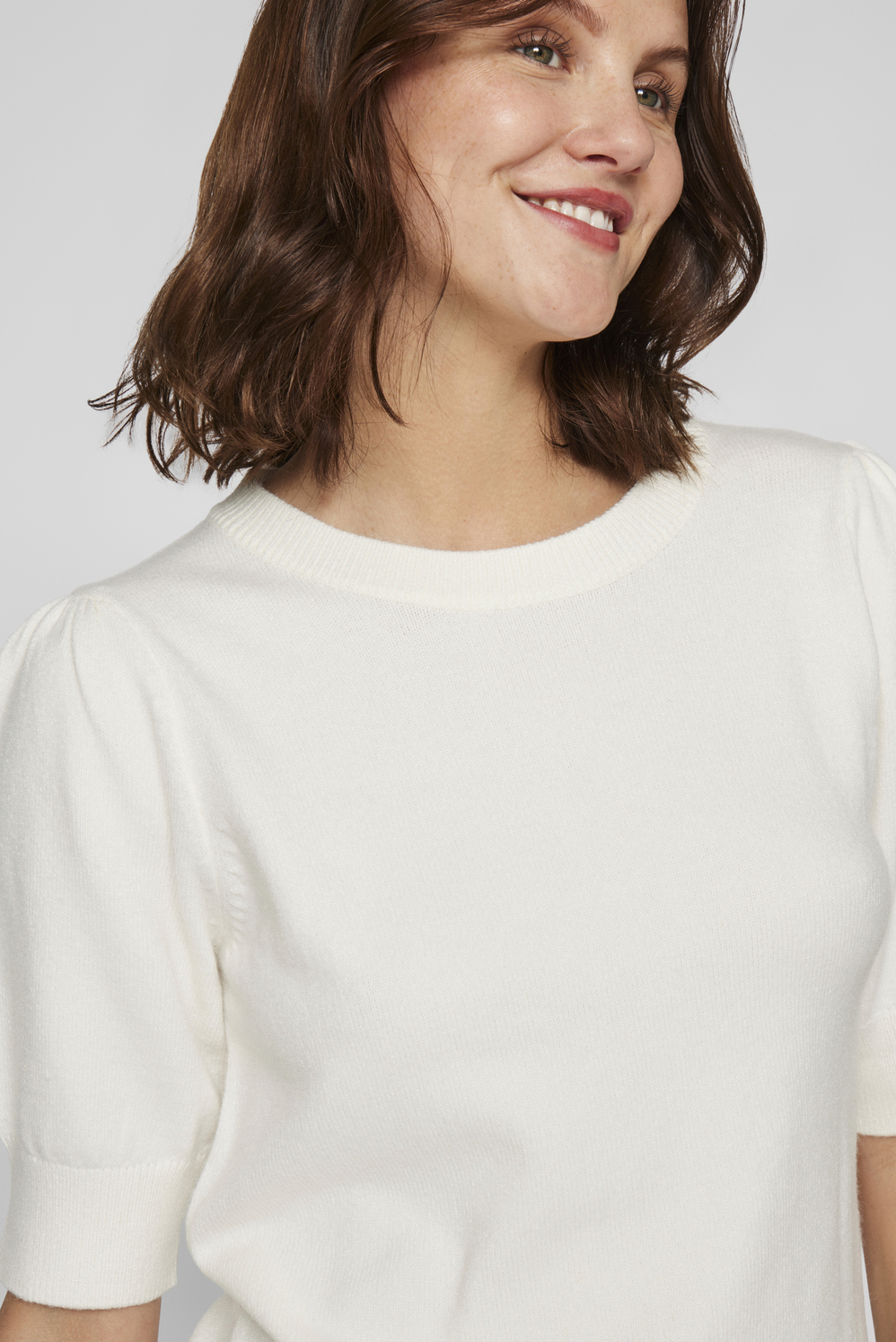 De Vila trui is afgewerkt in een subtiele witte tint, waardoor hij eenvoudig te matchen is met diverse kleuren in je kledingkast. Door de verfijnde gemêleerde stof is deze trui ideaal voor een dag op kantoor of een diner met vrienden. De elegante pofmouw voegt een vleugje stijl toe zonder al te opvallend te zijn. Kies voor comfort en stijl met deze duurzame keuze van Vila, en voeg een elegant stukje knitwear toe aan je collectie.