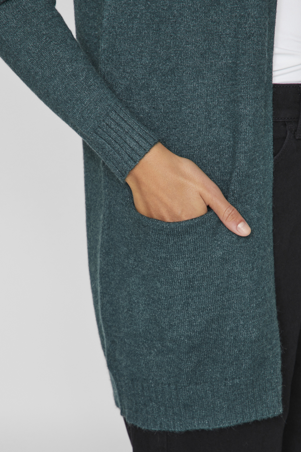 Vul je herfstgarderobe aan met dit gemêleerde vest van Vila in de kleur Ponderosa Pine/Dark. Dit stijlvolle knitwear vest is met zijn regular pasvorm ideaal voor dagelijks gebruik. De halflange lengte en lange mouwen maken het een comfortabele keuze op koele dagen. Dankzij de praktische steekzakken is het vest niet alleen chic, maar ook functioneel. Gemaakt van een mix van viscose, nylon en polyester, biedt dit vest een aangename zachtheid en duurzaamheid. Het subtiele gemêleerde patroon geeft een speelse touch aan dit verder tijdloze ontwerp. Combineer het met een eenvoudige top en jeans voor een casual koffie date of draag het over een nette blouse voor een dag op kantoor. Dit veelzijdige vest houdt je warm en in stijl, ongeacht de gelegenheid.