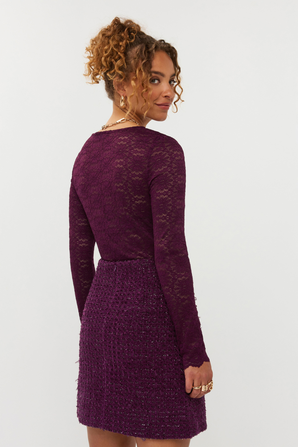 Dit casual auberginekleurige T-shirt van Ydence heeft een elegante uitstraling dankzij het fijne kantpatroon. Met zijn comfortabele regular fit en ronde hals past het perfect in jouw dagelijkse garderobe. De lange mouwen en normale lengte maken het een veelzijdige keuze voor de wintermaanden. De kantdetails geven het shirt een verfijnde look, waardoor het zowel stijlvol als trendy oogt.