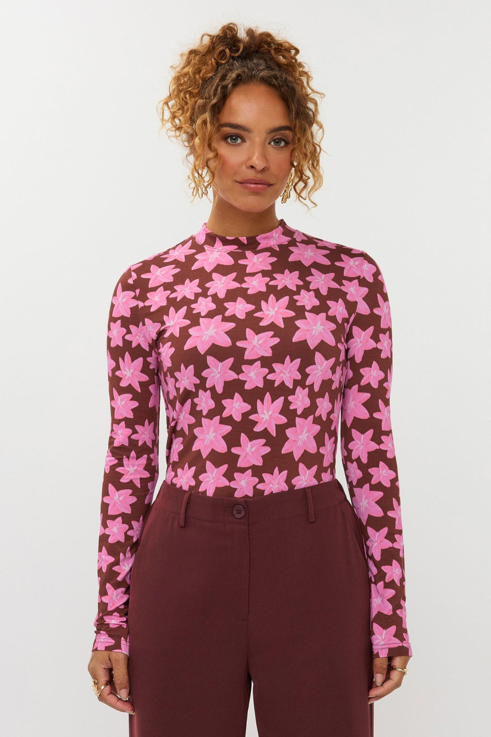 Dit casual T-shirt van Ydence is een speelse aanvulling op je wintergarderobe. Met een opvallend bloemenpatroon in roze tinten op een bruine achtergrond straalt het een vrolijke en energieke sfeer uit. De ronde hals en slim fit pasvorm zorgen voor een flatterende look die perfect aansluit op jouw lichaam. Dankzij de lange mouwen is dit T-shirt ideaal voor wat koelere dagen, terwijl de stof van 100% polyester zorgt voor een lichte en comfortabele ervaring.