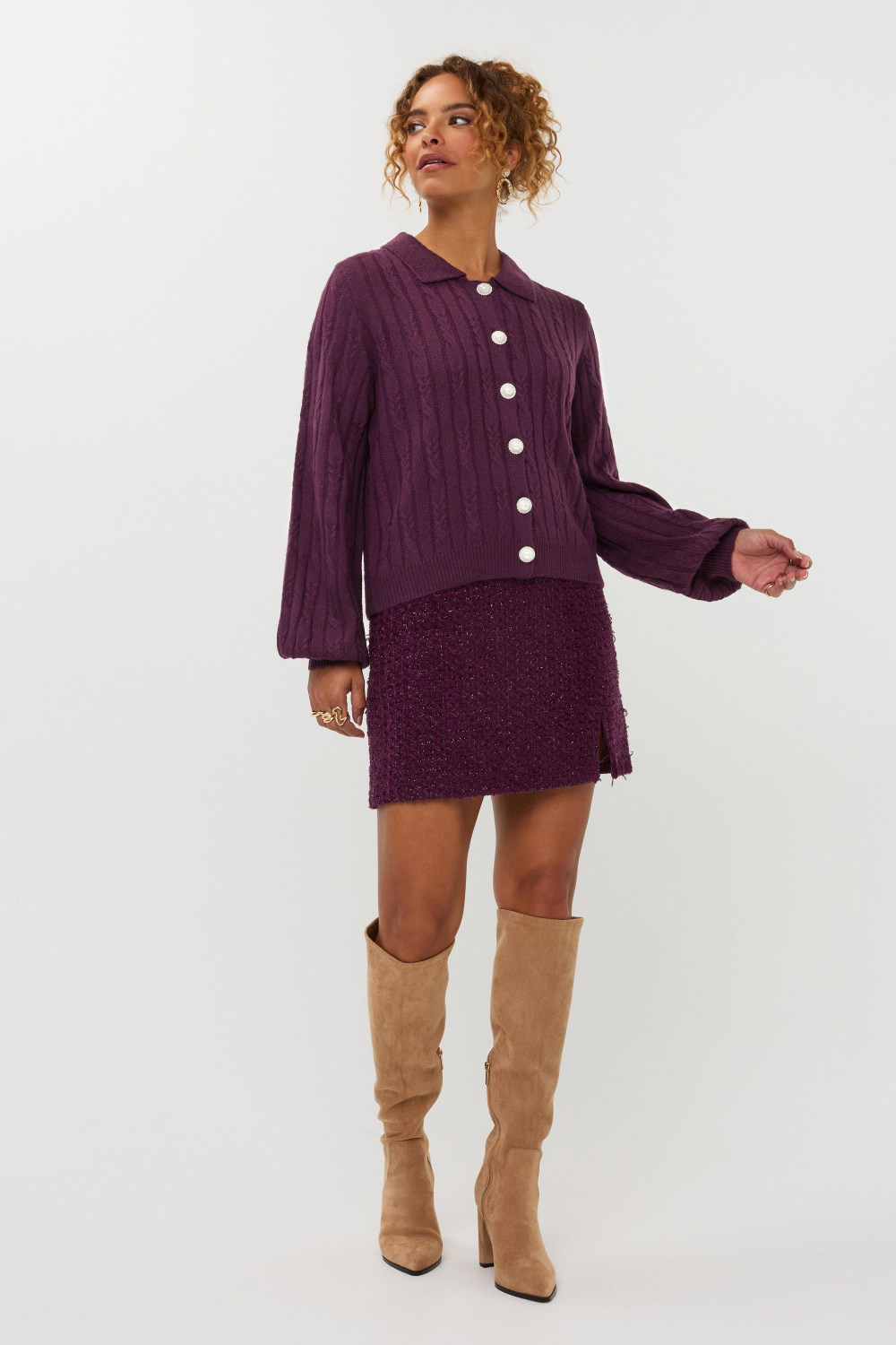 Dit stijlvolle aubergine vest van Ydence is een perfecte aanvulling op je wintergarderobe. Het vest, gemaakt van 100% acryl, voelt comfortabel en zacht aan, ideaal voor de koudere maanden. Met een regular fit en een puntkraag komt dit vest goed tot zijn recht in zowel casual als meer formele settings. De opvallende kabelpatroon textuur en elegante knoopsluiting geven het vest een tijdloze charme die bij elk outfit past. De lange mouwen en normale lengte maken het vest gemakkelijk te combineren met je dagelijkse outfits. Draag het bijvoorbeeld over een blouse voor een zakelijke look, of combineer het met een comfortabele jeans voor een ontspannen dagje uit. De rijke auberginekleur voegt een vleugje verfijning toe aan je look, waardoor het vest van Ydence zowel modieus als functioneel is voor diverse gelegenheden. Perfect voor een dag op kantoor of een gezellige avond met vrienden.