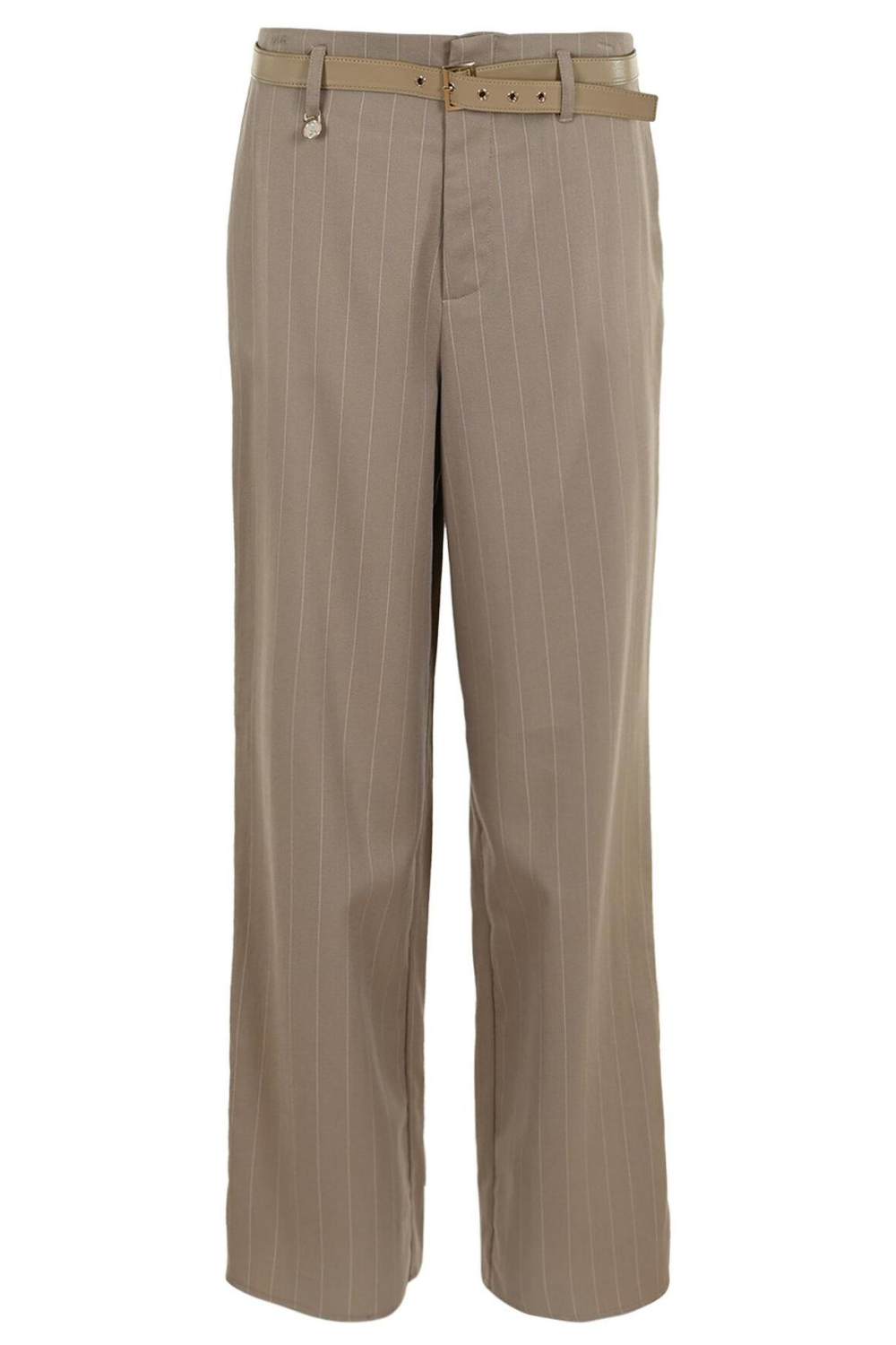 Deze stijlvolle gestreepte damesbroek van Zizo is een elegante toevoeging aan jouw herfstgarderobe. Met een high waist en wide leg pasvorm biedt de broek niet alleen comfort maar ook een flatterende snit. De subtiele strepenpatroon en de neutrale kleur zorgen voor een verfijnde look, perfect voor zowel casual als meer gepolijste settings. De broek is voorzien van steekzakken en sluit met een knoop en rits voor een klassiek silhouet. Of je nu een dagje op kantoor doorbrengt of gezellig wat gaat drinken met vrienden, deze Zizo broek past moeiteloos bij elke gelegenheid. Combineer hem met een nette blouse voor een zakelijke uitstraling of kies een casual top voor een relaxte day-out look. De normaal vallende lengte maakt het makkelijk om diverse schoeisel, van sneakers tot hakken, te matchen. Voeg deze veelzijdige broek toe aan je collectie voor een stijlvolle en comfortabele herfst.