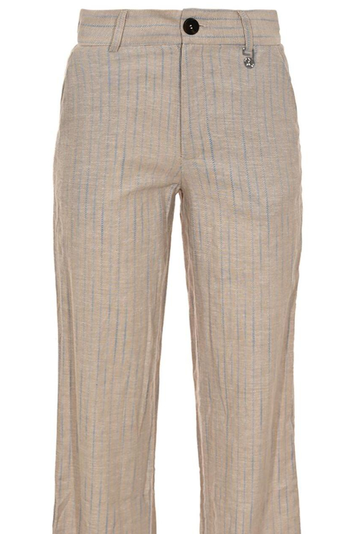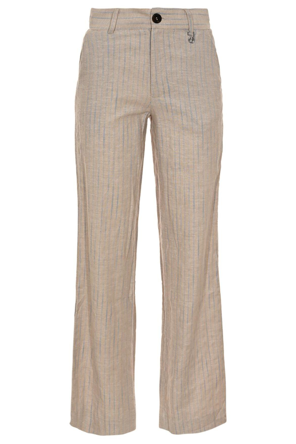 Deze stijlvolle Zizo wide leg broek in de kleur Sand Stripe is een comfortabele en modieuze keuze voor de lente. De broek, gemaakt zonder voering, heeft een regular waist en een structuurpatroon waardoor het een subtiele flair aan je outfit toevoegt. Met zijn ontspannen pasvorm is deze broek ideaal voor dames die houden van zowel stijl als comfort. De sluiting met een knoop en rits biedt praktische gebruiksgemak, terwijl de steekzakken een extra functioneel detail vormen. Dankzij het casual design van de Zizo broek, past hij perfect in zowel informele als half-formele settings. Draag hem met een luchtige blouse voor een dag op kantoor, of combineer met een basic T-shirt voor een ontspannen weekendlook. De natuurlijke kleuren zorgen ervoor dat hij moeiteloos te mixen is met verschillende stijlen en kleuren. Of je nu een dag in de stad doorbrengt of gezellig met vrienden afspreekt, deze broek biedt een stijlvolle basis voor je outfit.