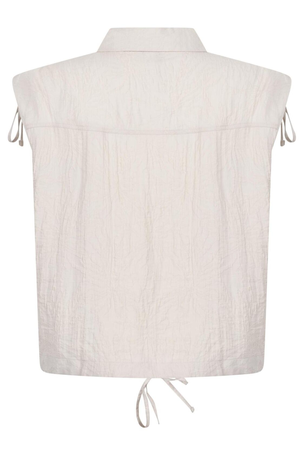 Deze stijlvolle mouwloze blouse van Zoso voegt een subtiele flair toe aan je zomercollectie. De blouse is gemaakt van een zachte, ademende stofmix van 74% viscose en 26% polyamide, wat bijdraagt aan een comfortabel draagcomfort gedurende de warmere seizoenen. Uitgevoerd in een elegante zandkleur, past dit stuk perfect bij verschillende outfits. De structuur in de stof en de opvallende puntkraag geven het een onderscheidende look, terwijl de knoopsluiting zorgt voor een klassieke touch. Met zijn regular fit is deze Zoso blouse ideaal voor diverse gelegenheden, van informele bijeenkomsten tot een ontspannen dag in de stad. De decoratieve strikdetails aan de schouders en de subtiele drapering langs de zijkanten onderstrepen het casual karakter. Of je het combineert met een lichte short voor een stranddag of met een lange rok voor een avond uit, deze blouse biedt veelzijdigheid en stijl in één eenvoudig kledingstuk.