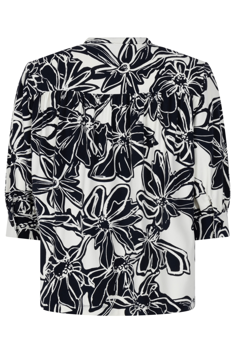 Deze stijlvolle damesblouse van Zoso, uitgevoerd in NIGHT BLUE, is een ideale keuze voor de lente. Met een modern en casual ontwerp is de blouse voorzien van een opvallend grafisch patroon dat een frisse uitstraling geeft aan je outfit. De v-hals accentueert subtiel je halslijn, terwijl de regular fit zorgt voor een comfortabele pasvorm. Gemaakt van 78% polyamide en 22% elastan, biedt deze blouse een lichte en soepele textuur die prettig aanvoelt op de huid. De blouse heeft een normale lengte en 3/4 mouwen, waardoor het perfect is voor zowel coolere als warmere dagen. Combineer deze veelzijdige blouse met een donkere jeans of een nette broek voor een moeiteloze, casual look. Of je nu een dagje op kantoor doorbrengt of een ontspannen weekend hebt gepland, deze Zoso blouse voegt een modieuze en verfijnde touch toe aan je dagelijkse garderobe. Dankzij de tijdloze kleuren en het flatterende silhouet kun je het gemakkelijk mixen en matchen voor diverse gelegenheden.
