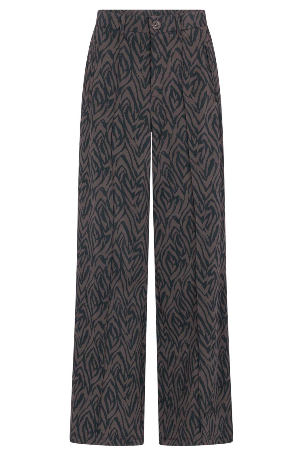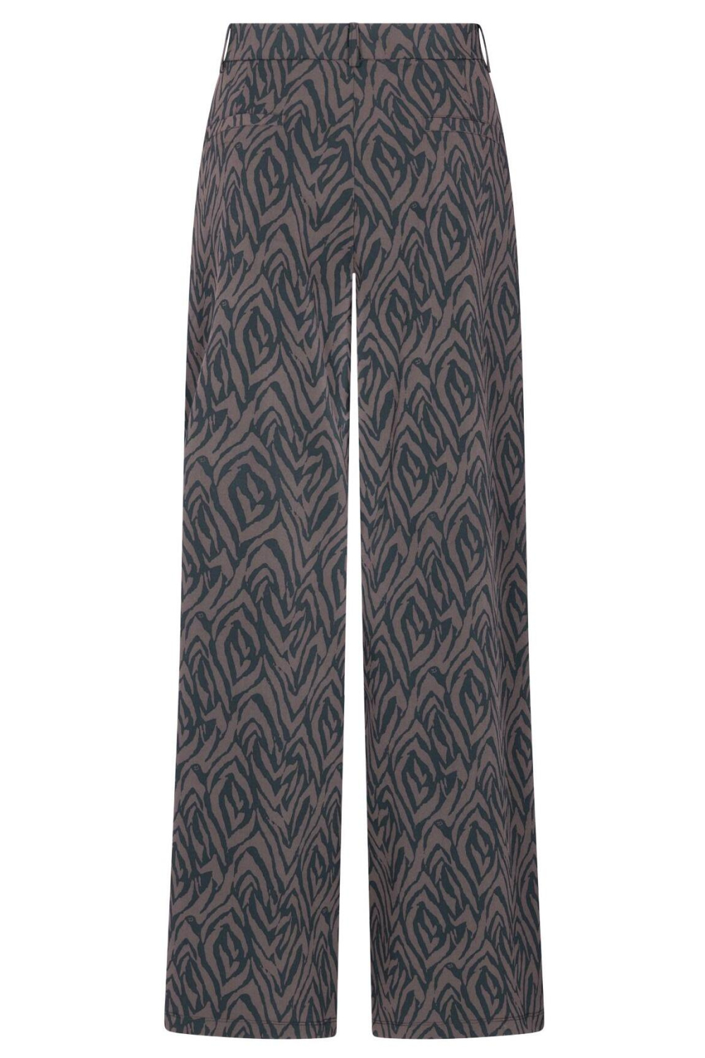 Deze stijlvolle broek van Zoso is een uitstekende keuze voor de herfst. Uitgevoerd in een mocha-navy kleur, valt deze broek direct op door het grafische patroon dat een chic en modern tintje geeft. De wide leg pasvorm biedt niet alleen comfort maar ook een trendy uitstraling, ideaal voor casual gelegenheden. De broek is gemaakt van 80% polyamide en 20% elastan, wat zorgt voor een aangenaam draaggevoel en een mooie pasvorm.