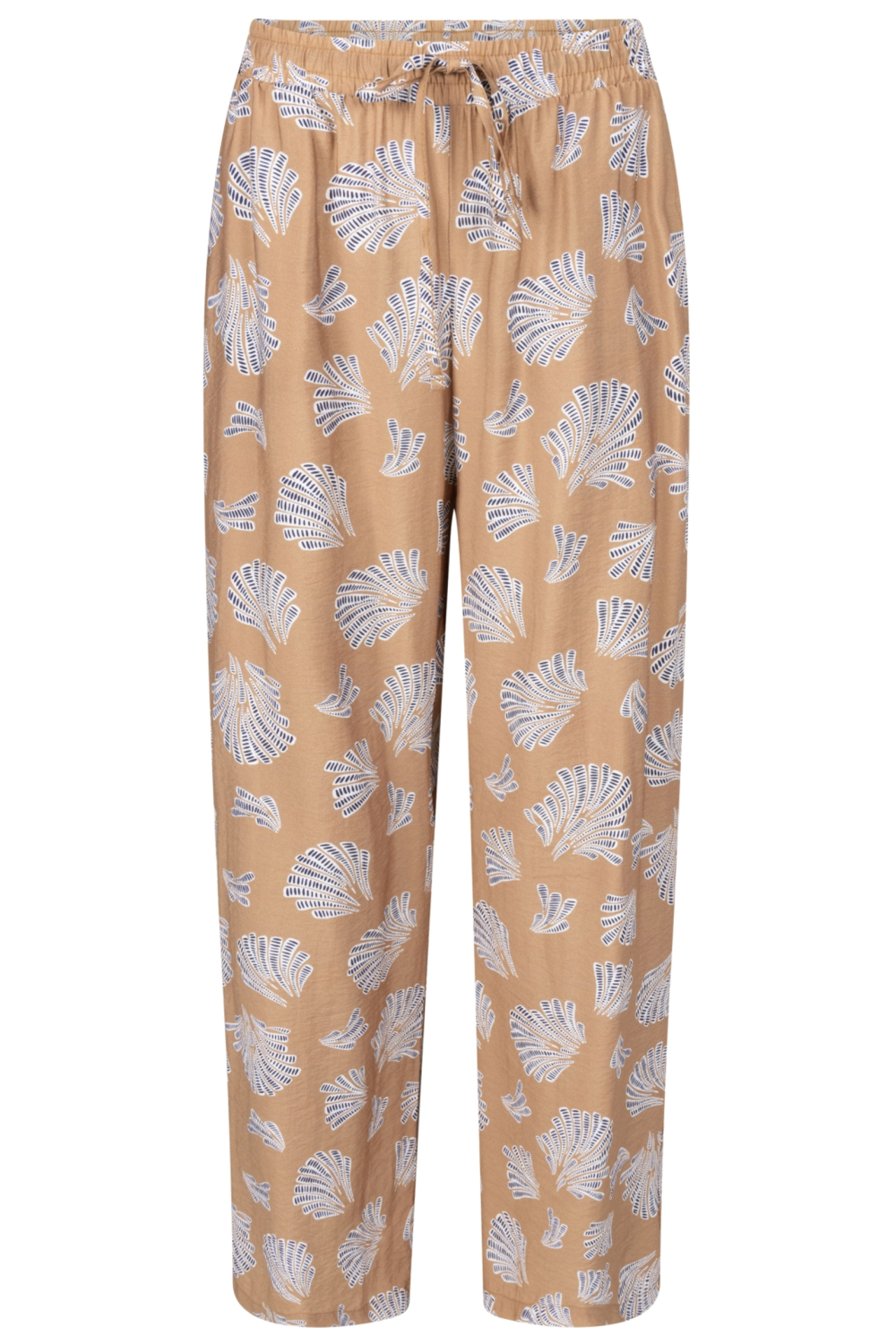 Deze casual broek van Zoso is een perfecte aanvulling op je voorjaarsgarderobe. Met een regular fit en normale lengte biedt deze broek comfort en stijl in één. De beige basis met een opvallend grafisch patroon in witte en blauwe tinten geeft de broek een speelse en modieuze uitstraling. Gemaakt van 100% viscose, voelt de stof licht en luchtig aan, ideaal voor de warmere dagen van het jaar. De elastische boord zorgt ervoor dat de broek gemakkelijk aan te trekken is en comfortabel zit gedurende de dag. Of je nu een relaxte dag thuis hebt, een lunch met vrienden of een wandeling door het park, deze broek is een veelzijdige keuze die makkelijk te combineren is met verschillende tops en schoenen. Je kunt hem combineren met een eenvoudig T-shirt voor een meer casual look of een blouse voor een iets formelere uitstraling. Dankzij de regular waist en het grafische ontwerp is dit kledingstuk zowel functioneel als trendy. Voeg een vleugje creativiteit toe aan je outfits met deze stijlvolle broek van Zoso.
