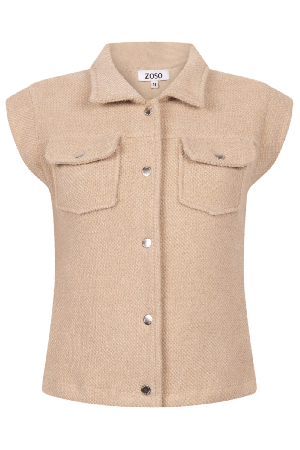 Voeg een vleugje verfijning toe aan je herfstgarderobe met dit elegante sandkleurige gilet van Zoso. De structuur en de fijne afwerking geven dit gilet een tijdloze uitstraling. Met een regular pasvorm en een puntkraag biedt het zowel stijl als comfort. De drukknoopsluiting aan de voorzijde zorgt voor een praktische en stijlvolle afwerking. De handige klepzakken voegen niet alleen functionaliteit toe, maar ook een speels detail dat dit kledingstuk geschikt maakt voor allerlei gelegenheden. Of je nu een dagje casual doorbrengt of een avondje uit plant, dit gilet past perfect.