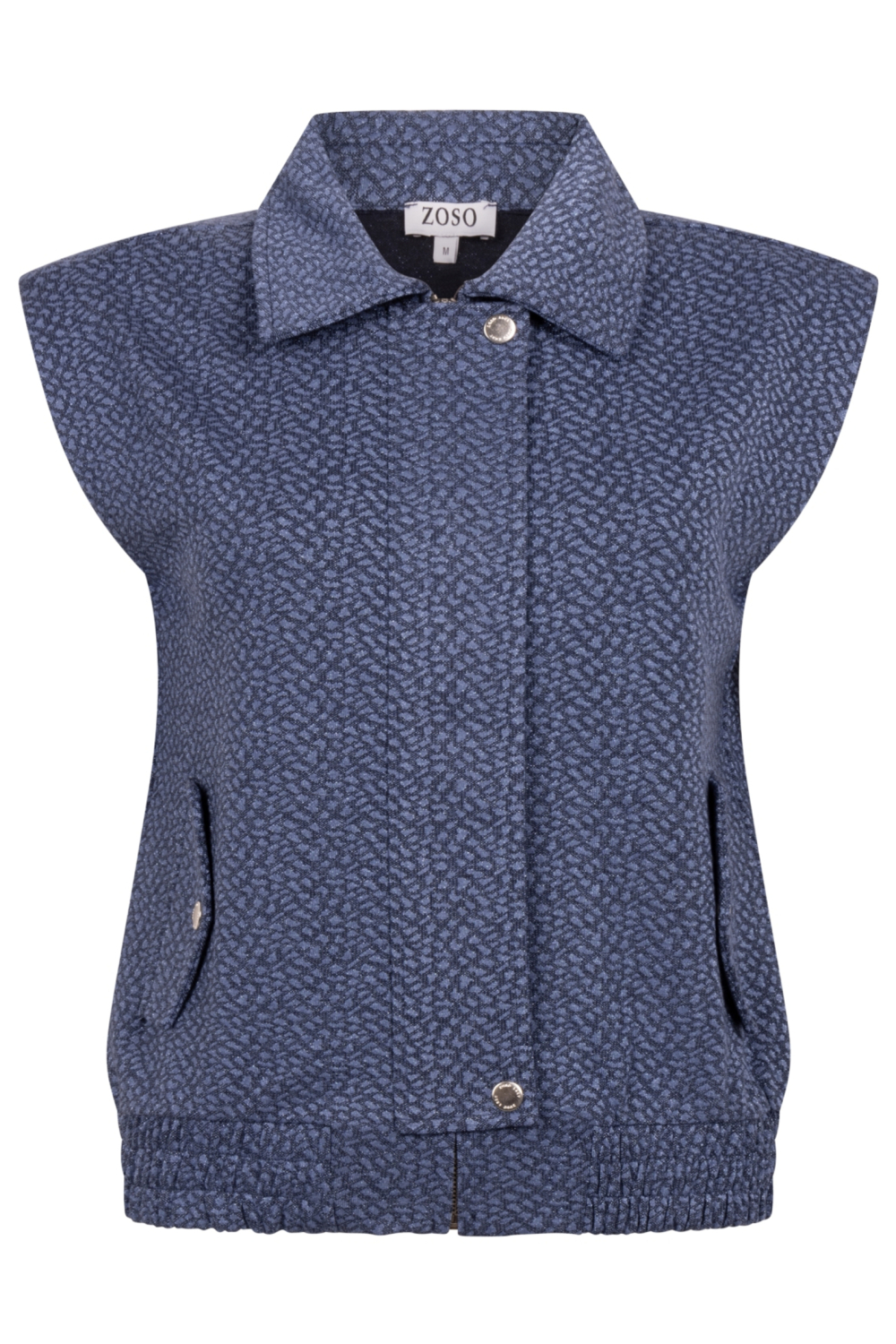 Dit casual gilet van Zoso in de kleur 0015 BLUE is een veelzijdige toevoeging aan je garderobe. Het gilet heeft een regular pasvorm en is vervaardigd uit een comfortabele mix van polyester, viscose, lurex en elastan. De stof heeft subtiele glitters die een speelse, maar toch smaakvolle uitstraling geven. Met een knoop- en ritssluiting is dit gilet zowel praktisch als stijlvol. De puntkraag voegt een klassieke touch toe, terwijl het patroon zorgt voor een modieuze look. De mouwloze constructie maakt het perfect voor de herfst, waarbij je het eenvoudig over een shirt of blouse kunt dragen.
