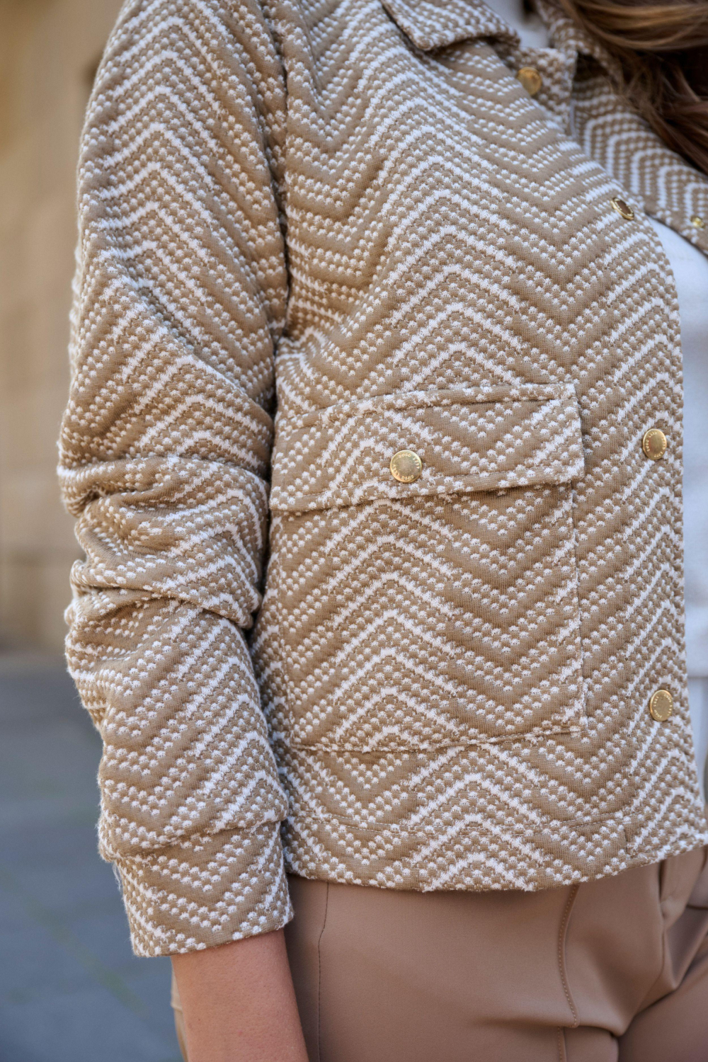 Deze stijlvolle camel jas van Zoso is de perfecte keuze voor de winter. Met een opvallend zigzagpatroon in de kleur 1110 camel, voegt het een subtiele vleugje stijl toe aan je dagelijkse outfit. De jas is ontworpen met een regular pasvorm en lange mouwen, wat zorgt voor optimaal draagcomfort en bewegingsvrijheid. De praktische drukknoopsluiting en klepzakken maken het zowel functioneel als modieus.