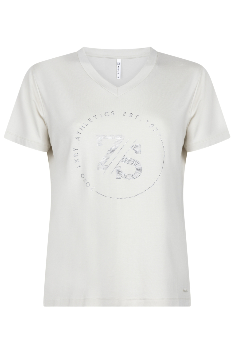 Dit casual dames T-shirt van Zoso valt op door zijn stijlvolle eenvoud en de subtiele glans van de tekstprint. In de zachte kleur 'Kit', biedt dit T-shirt een aangename en veelzijdige tint die bij veel outfits past. De ronde halslijn geeft een klassieke touch, terwijl de korte mouwen en de regular fit zorgen voor een comfortabel draaggemak. Het materiaal, een mix van 95% viscose en 5% elastan, biedt lichte stretch en een zachte, soepele pasvorm. Ideaal voor het lenteseizoen, kun je dit Zoso T-shirt eenvoudig combineren met je favoriete jeans of rok voor een relaxte weekendlook. De normale lengte maakt het geschikt om zowel in als over een broek of rok te dragen. Perfect voor een casual dagje uit of een ontspannen middag in het park. Of je nu op pad gaat met vrienden of een rustige dag thuis doorbrengt, dit T-shirt biedt comfort en stijl in één pakket.