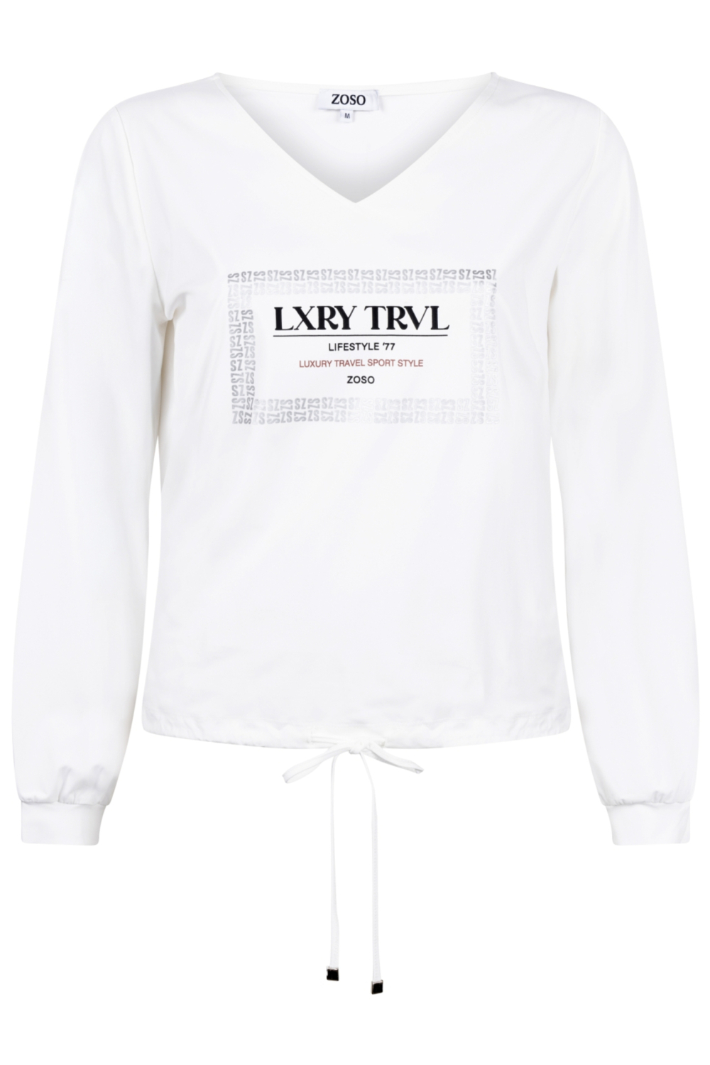 Dit Zoso T-shirt voor dames, uitgevoerd in een stijlvolle off-white kleur, is een fijne toevoeging aan je dagelijkse kledingcollectie. Met de casual uitstraling en de opvallende tekstprint op de voorkant, is het een ideaal shirt voor comfortabele dagen. De V-hals geeft een elegante touch, terwijl de lange mouwen zorgen voor extra warmte tijdens de koude wintermaanden. Dankzij de regular fit pasvorm biedt het T-shirt een ontspannen look zonder in te boeten op stijl.