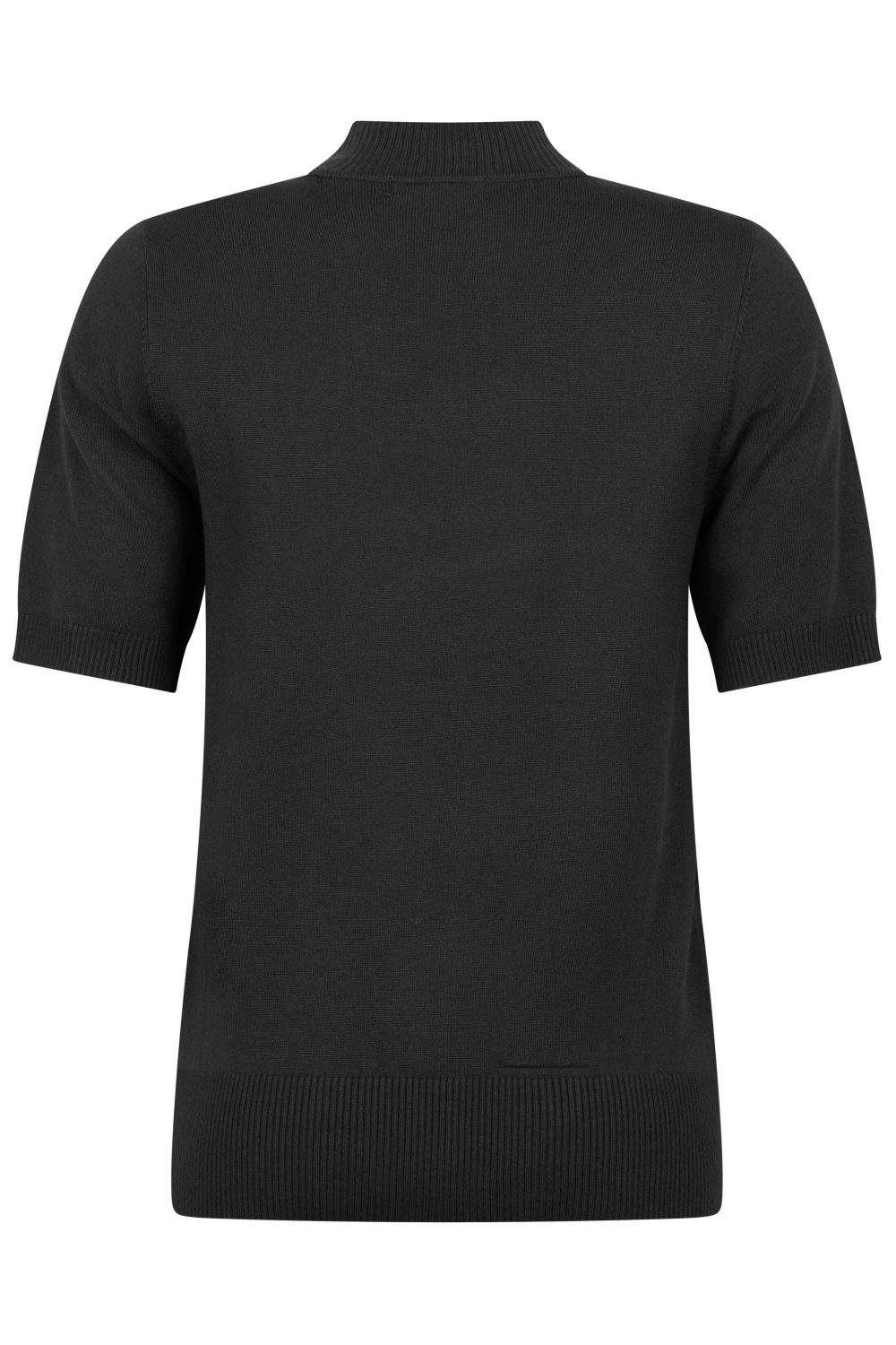 Of je nu een dag op kantoor doorbrengt of een avondje uit plant, dit T-shirt is een uitstekende keuze. Door de veelzijdige zwarte kleur en de reguliere lengte past het perfect bij jeans en casual broeken, maar ook bij een nette rok voor een chiquere look. De subtiele ribbels aan de randen van de mouwen en de onderkant geven het nog een extra vleugje verfijning, zonder dat het te opvallend wordt. Combineer het met je favoriete accessoires voor een persoonlijke stijl die indruk maakt.