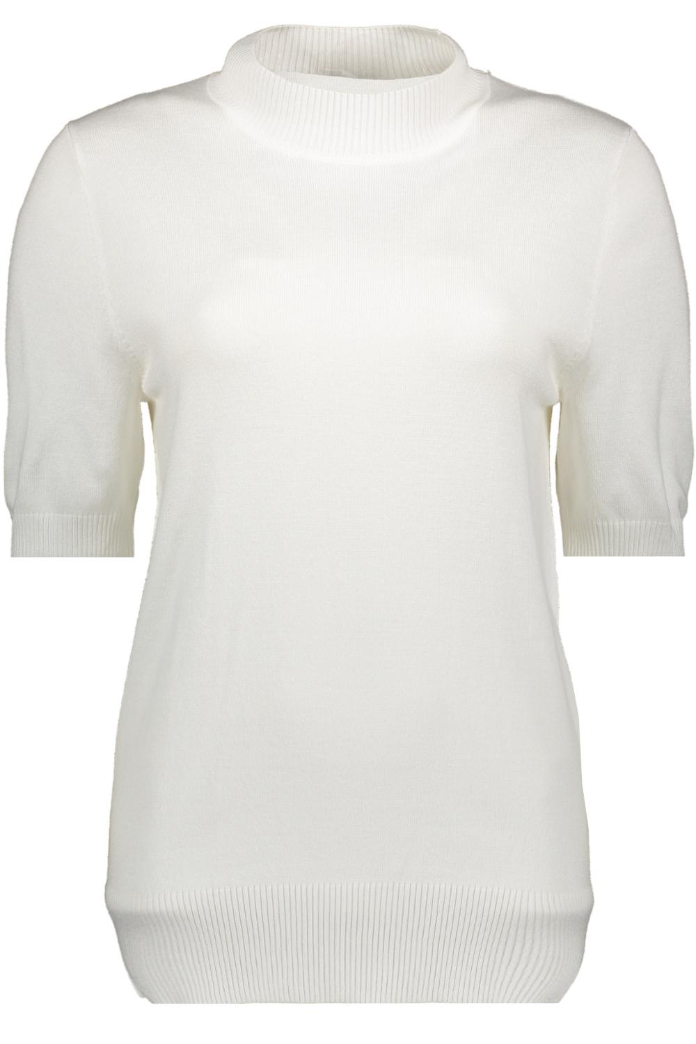 Dit dames T-shirt van Zoso is uitgevoerd in een verfijnde off-white tint en is een subtiele en veelzijdige toevoeging aan je wintergarderobe. Gemaakt van 71% viscose en 29% polyamide, biedt dit T-shirt een comfortabele en soepele pasvorm die perfect aanvoelt op je huid. De high neck en de korte mouwen geven het een moderne uitstraling, terwijl de regular fit bijdraagt aan het dagelijkse draagcomfort. De subtiele ribgebreide textuur voegt een extra dimensie toe aan dit stukje knitwear. Dit Zoso T-shirt is ideaal voor zowel casual als meer geklede gelegenheden. Draag het met een blazer voor een nette kantoorlook of combineer het met een jeans voor een ontspannen dagje uit. De neutrale kleur maakt het eenvoudig om te matchen met diverse kleuren en stijlen in je kast. Of je nu naar een lunchafspraak gaat of een informele bijeenkomst hebt, dit T-shirt biedt zowel stijl als moeiteloze elegantie.