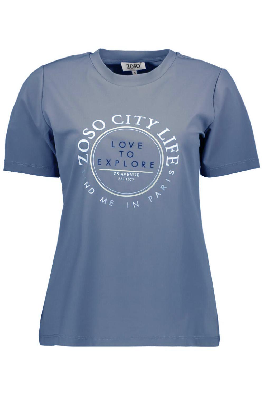Dit stijlvolle blauwe T-shirt van Zoso is een must-have voor jouw casual wintercollectie. Het shirt is vervaardigd van een hoogwaardige mix van 84% polyamide en 16% elastan, wat zorgt voor een comfortabele en duurzame pasvorm. De ronde halslijn en korte mouwen geven het shirt een ontspannen uitstraling, ideaal voor dagelijks gebruik. Het opvallende tekstpatroon "Zoso City Life" in het midden voegt een eigentijdse touch toe, waardoor het een veelzijdige keuze is voor diverse gelegenheden.